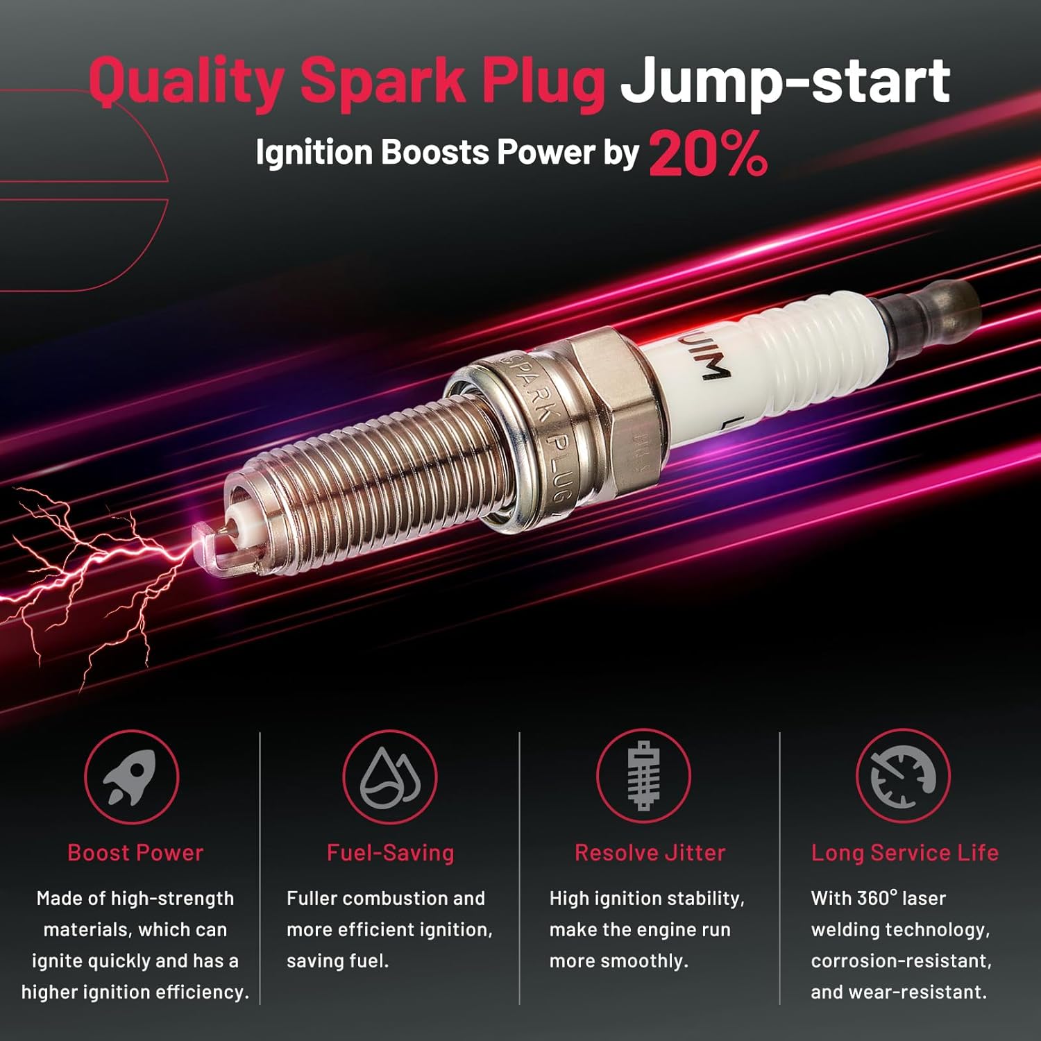 【Spark Plug Features】spark plugs are made of iridium electrodes and hydrostatic ceramics, and are hot riveted to give them superior ignition performance and a longer service life, ensuring that your car will take on a new lease of life after installation.OE No.97390, LKR7BGPS.