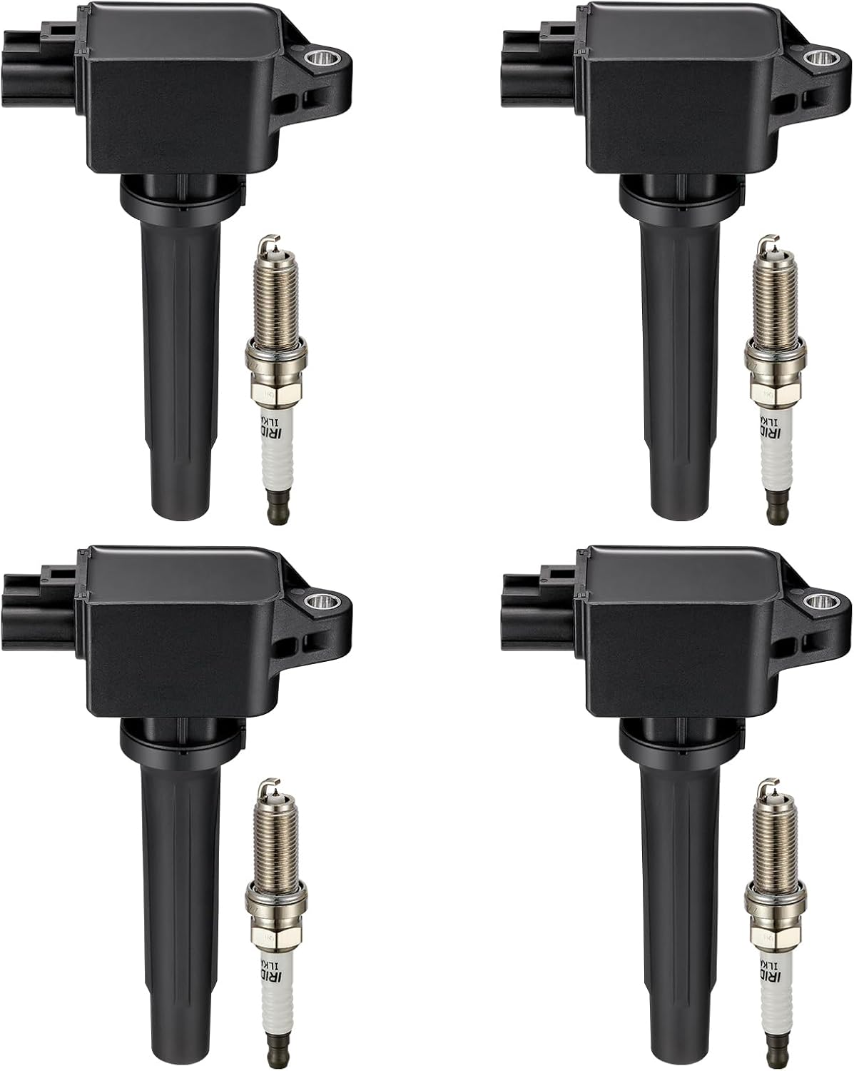 BDFHYK Ignition Coils UF656 and Iridium Spark Plug 93501 Compatible with Mazda 3 Sport 6 CX-3 CX-5 CX-9 MX-5 Miata l4 2.0L 2.5L Replaces GN10625 C-857 LKAR7BIX-11S C1837 5C1894 PE0118100A Set of 4