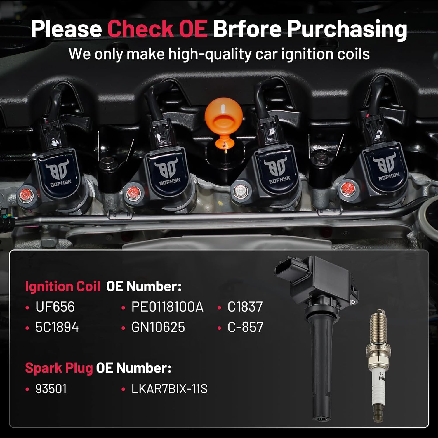 【Buy with Confidence】When your car has traveled more than 80,000km and is experiencing problems such as hard starting, excessive cranking time, lack of power, and increased fuel consumption, you may need to replace it with a new set of coil packs. Replacing our ignition coils can make your car as if it were new!You may choose it with confidence.