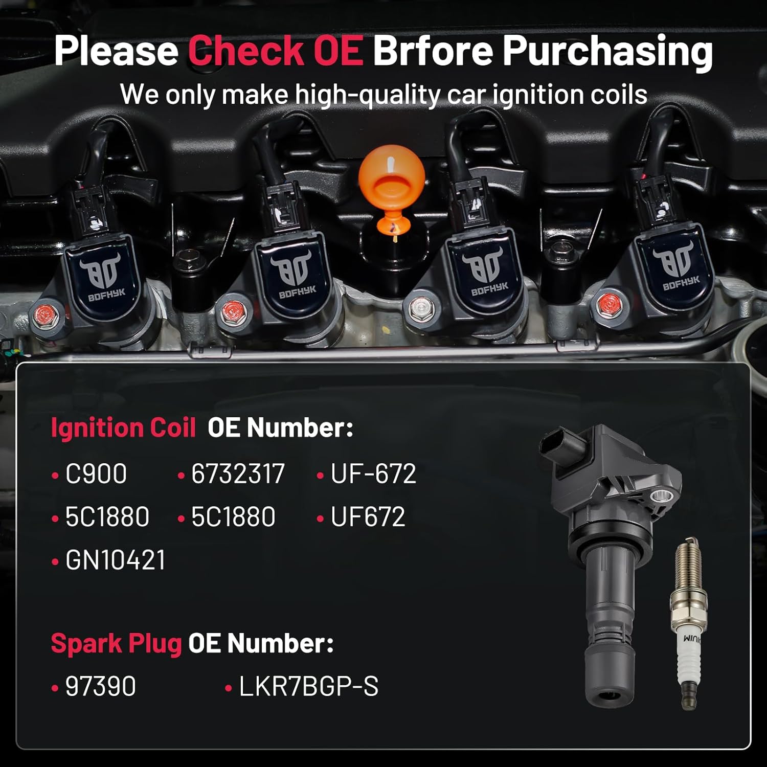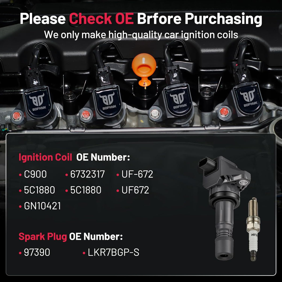 BDFHYK Ignition Coils UF672 and Iridium Spark Plug 97390 Compatible with Honda Civic Acura ILX l4 1.8L 2.0L Replaces C900 5C1880 GN10421 6732317 5C1880 LKR7BGP-S Set of 4