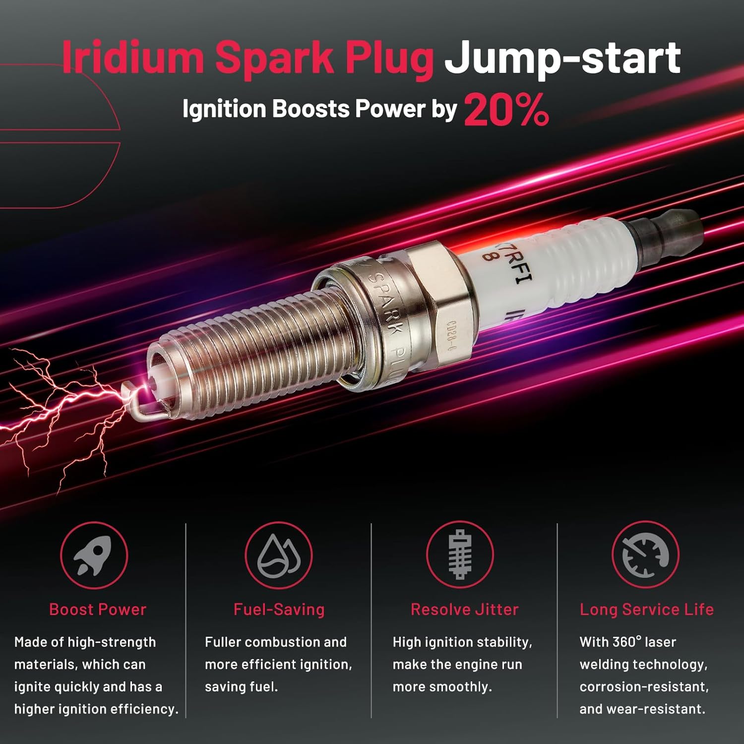 【Spark Plug Features】spark plugs are made of iridium electrodes and hydrostatic ceramics, and are hot riveted to give them superior ignition performance and a longer service life, ensuring that your car will take on a new lease of life after installation.OE No.97390, LKR7BGP-S.