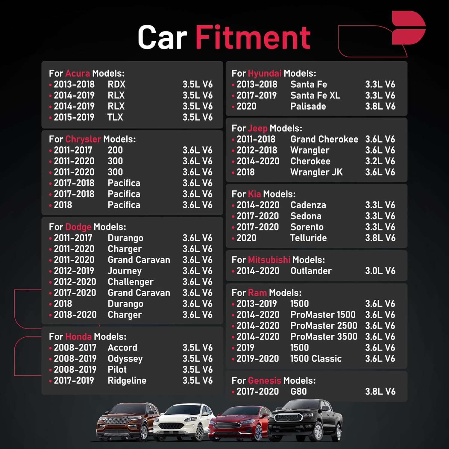 【Compatible Vehicle Information】Spark plug Compatible with Acura 2014-2019 RLX; Compatible with Chrysler 2017-2018 Pacifica; Compatible with Dodge 2011-2020 Charger, 2011-2018 Durango; Compatible with Genesis 2017-2020 G80; Compatible with Honda 2008-2019 Odyssey Pilot, 2008-2017 Accord; Compatible with Hyundai 2013-2018 Santa Fe; 2017-2020 Sedona Sorento; 2012-2018 Wrangler, 2014-2020 Cherokee, etc.For more information, please check the pictures or the item detail page.