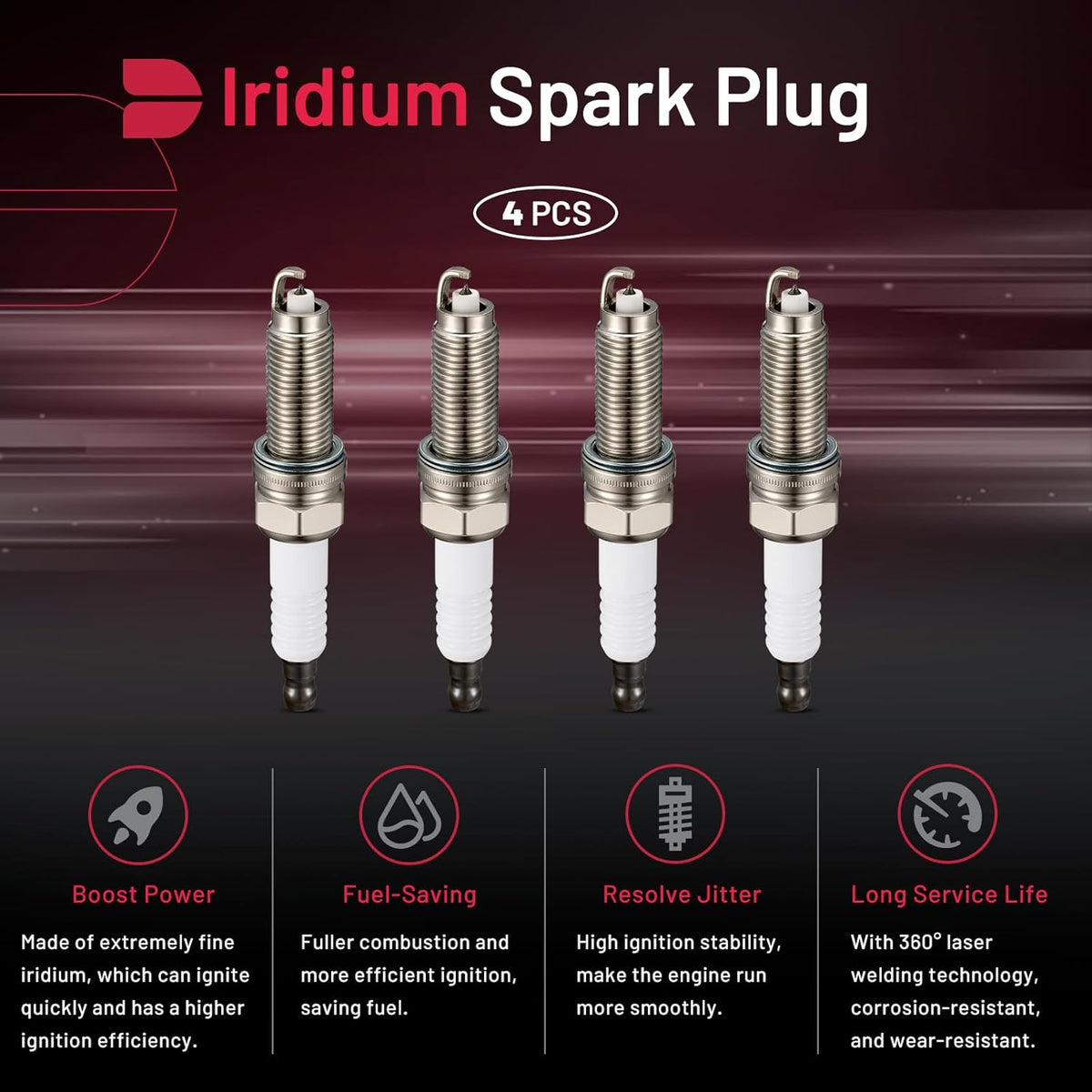 BDFHYK Iridium Spark Plugs Compatible with Honda Civic Crosstour CR-V Accord for Acura ILX TSX 2.4L L4 Engine Replacement for 9619, Set of 4