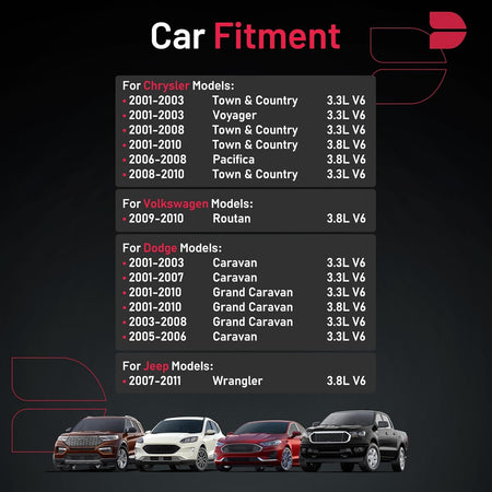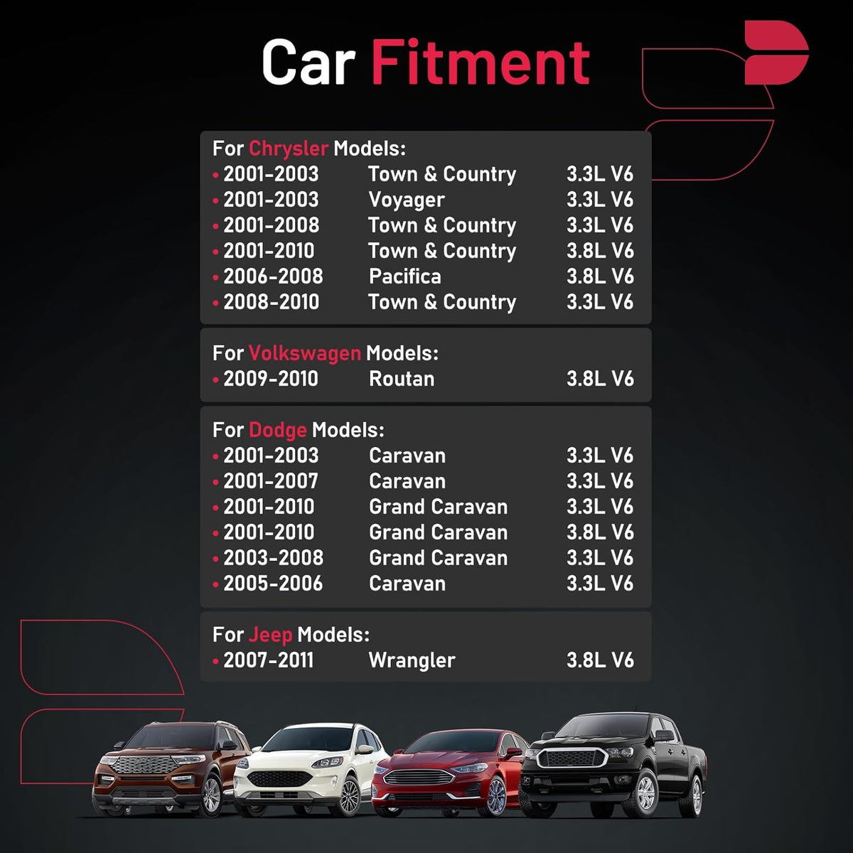 【Compatible Vehicle Information】Spark plug Compatible with Jeep 2007-2011 Wrangler; Compatible with Dodge 2001-2010 Grand Caravan; Compatible with Chrysler 2001-2010 Town & Country; Compatible with Chrysler 2001-2003 Voyager, 2006-2008 Pacifica; Compatible with Volkswagen 2009-2010 Routan.For more information, please check the pictures or the item detail page.