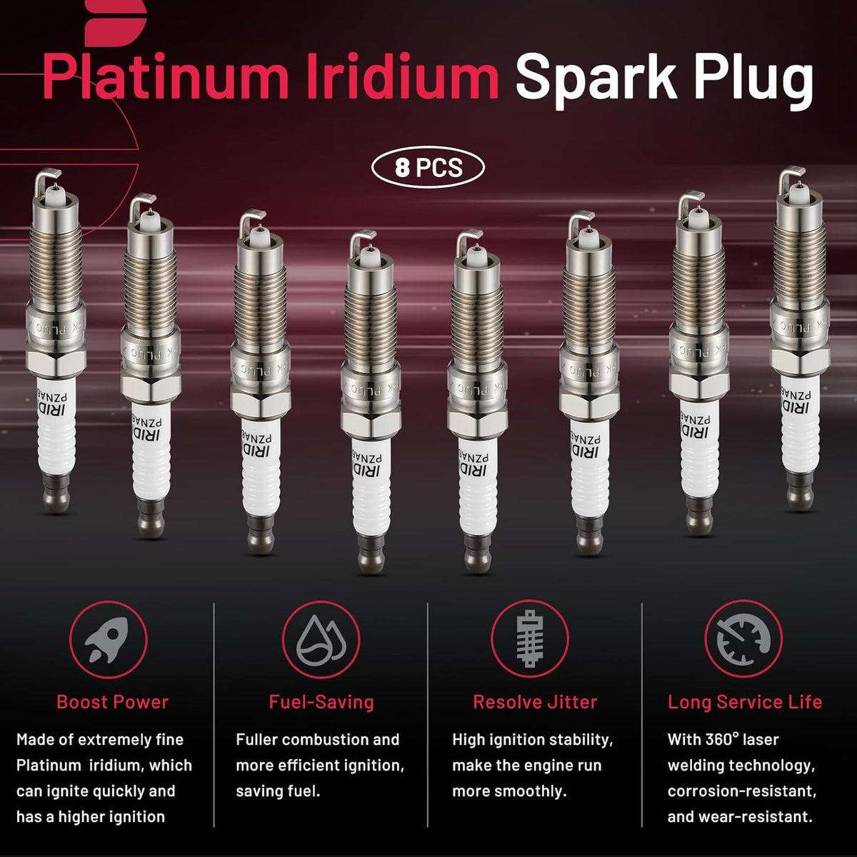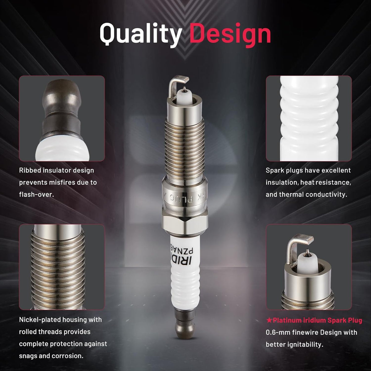 【With higher performance】The center electrode of the spark plug is made of extremely fine iridium electrode, which better concentrates the spark energy and provides good ignition performance for the vehicle. A copper core is embedded in the center electrode to improve the heat dissipation performance of the vehicle. The insulator is made of isostatically pressed ceramic, which has high strength thermal resistance and good insulation.