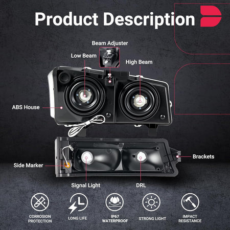 IP67 Waterproof: The fully sealed waterproof structure design can make the upgrade headlights well prevent external rain and moisture from entering in any bad weather, such as rain, snow, sand, etc