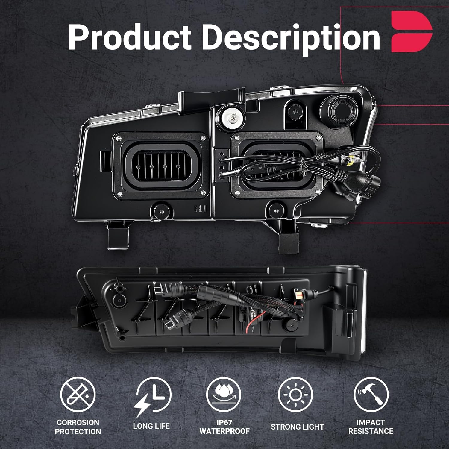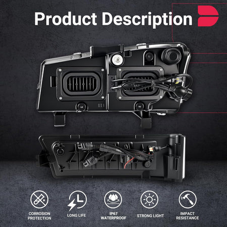 Brand New Upgraded Performance: Compared with the housing with holes on the market, our headlight adopts a compact integrated design with stronger adhesives and 8 one-way breathing valves, better IP67 waterproof performance to prevent moisture in all extreme weather conditions, without corrosion or fogging.