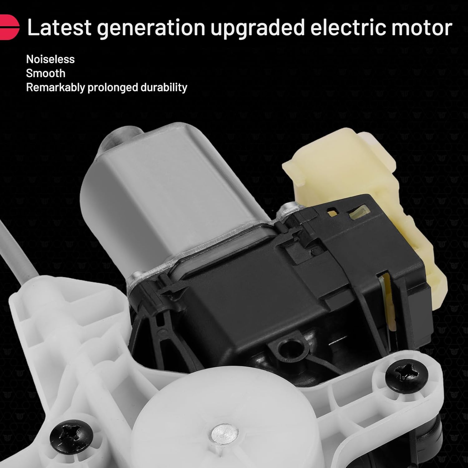 【Premium Quality】 This window regulator and motor assembly feature significant enhancements over the factory part, providing a higher level of reliability. It incorporates tension springs to effectively resist cable reel binding caused by prolonged use. Additionally, it is equipped with advanced cable guides to eliminate high cable tension and reduce cable stress.