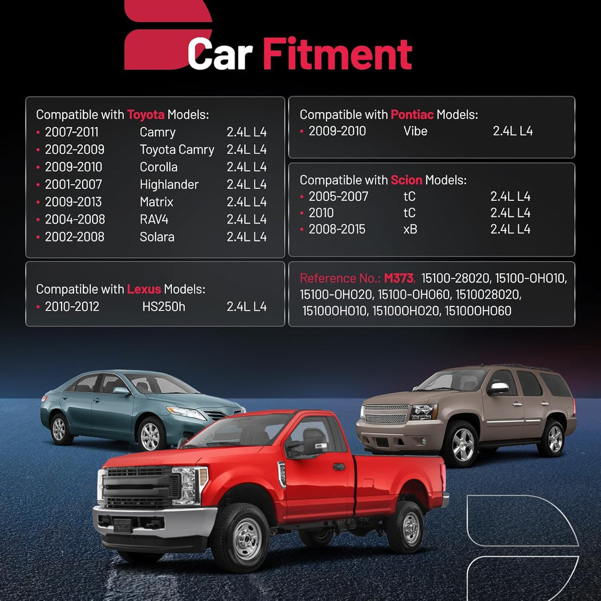 [Fitment]: High pressure oil pump fit Compatible with Toyota Camry 2002-2011, Corolla 2009-2010, Highlander 2001-2007, Matrix 2009-2013, RAV4 2004-2008, Solara 2002-2008 2.4L L4; Compatible with Scion tC 2005-2007, tC 2010, xB 2008-2015 2.4L L4; Compatible with Lexus HS250h 2010-2012 2.4L L4; Compatible with Pontiac Vibe 2009-2010 2.4L L4