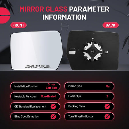 【Buy with Confidence】Exterior Mirror Replacement Glass is carefully crafted using the latest technology and production methods.The mounting points are identical to the factory mirrors and you can install them in minutes.