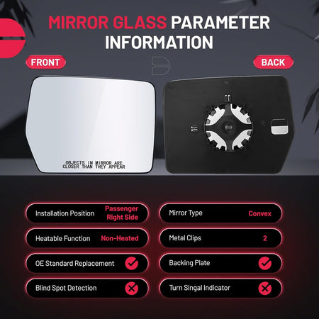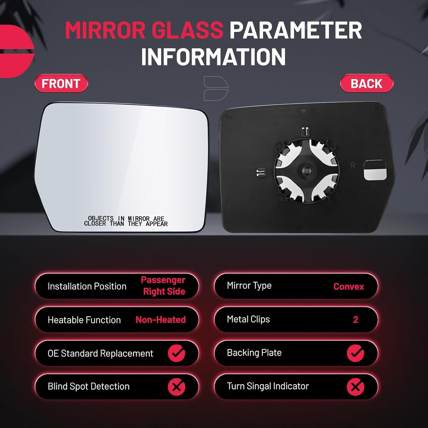 【PACKAGE INCLUDE】1 PCS Passenger Right Convex Mirror Glass. (with plastic backing plate; Flat Glass;Non Heated)