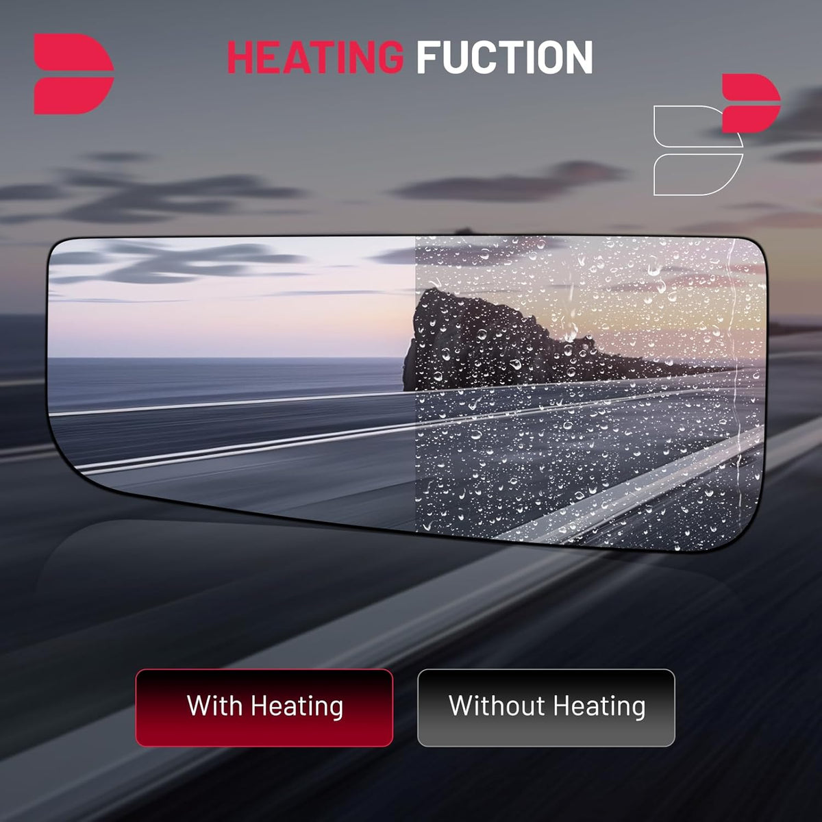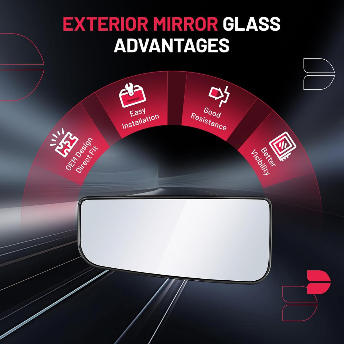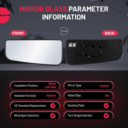 【PACKAGE INCLUDE】Includes 1 PCS driver left side convex mirror glass. Identical mounting point with factory mirror, perfectly fit with the existing electrical wiring. Wiring harness must be unplugged from existing backing plate and plugged into the new backing plate before installation. You can complete the installation in a few minutes.