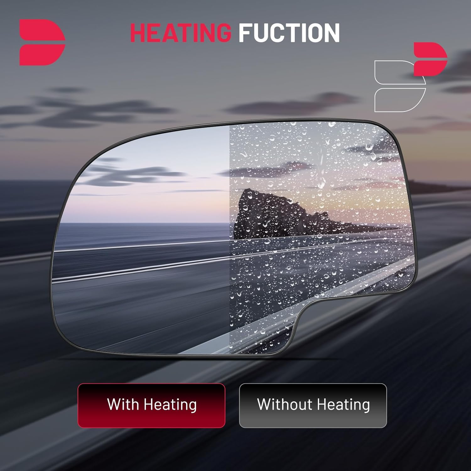 【Buy with Confidence】Exterior Mirror Replacement Glass is carefully crafted using the latest technology and production methods.The mounting points are identical to the factory mirrors and you can install them in minutes.