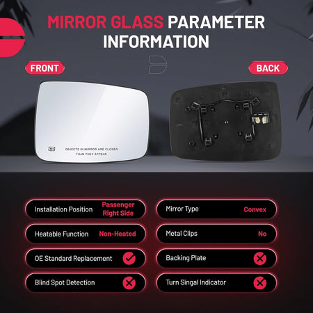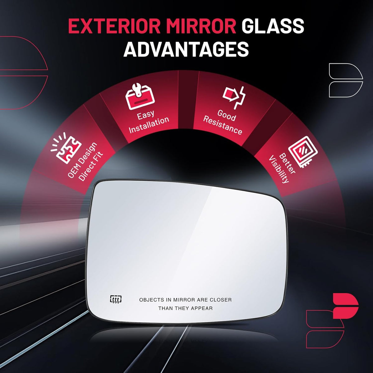 【Buy with Confidence】Exterior Mirror Replacement Glass is carefully crafted using the latest technology and production methods.The mounting points are identical to the factory mirrors and you can install them in minutes.
