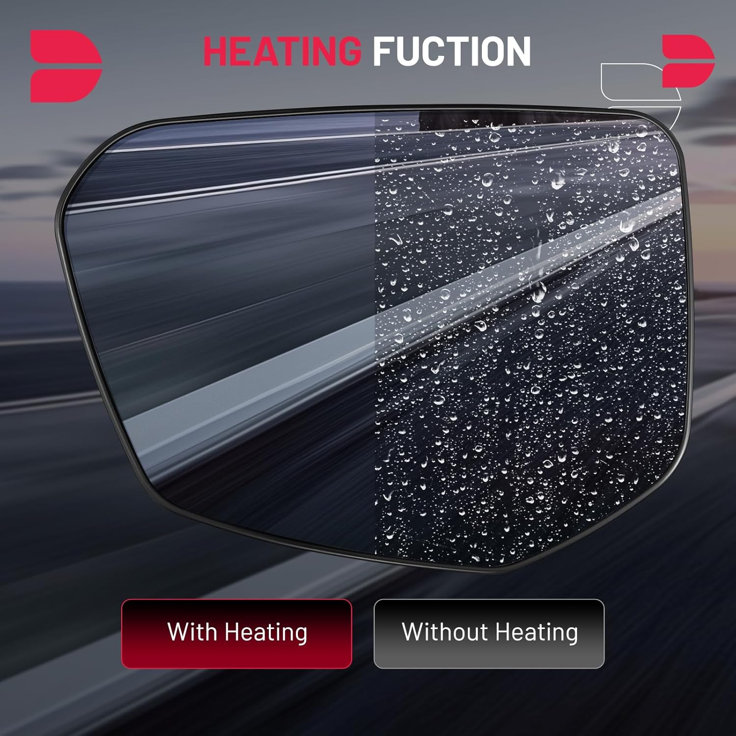 【PACKAGE INCLUDE】Includes 1 PCS driver left side convex mirror glass. Identical mounting point with factory mirror, perfectly fit with the existing electrical wiring. Wiring harness must be unplugged from existing backing plate and plugged into the new backing plate before installation. You can complete the installation in a few minutes.
