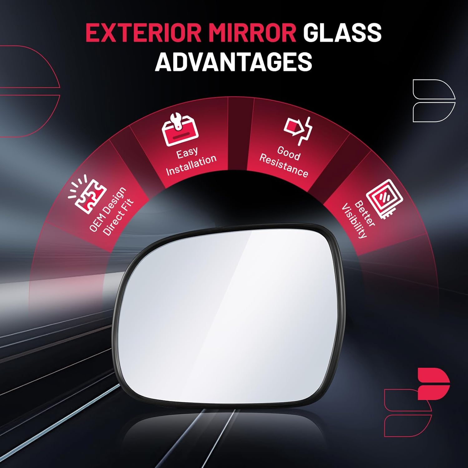 【PACKAGE INCLUDE】Includes 1 PCS driver left side convex mirror glass. Identical mounting point with factory mirror, perfectly fit with the existing electrical wiring. Wiring harness must be unplugged from existing backing plate and plugged into the new backing plate before installation. You can complete the installation in a few minutes.