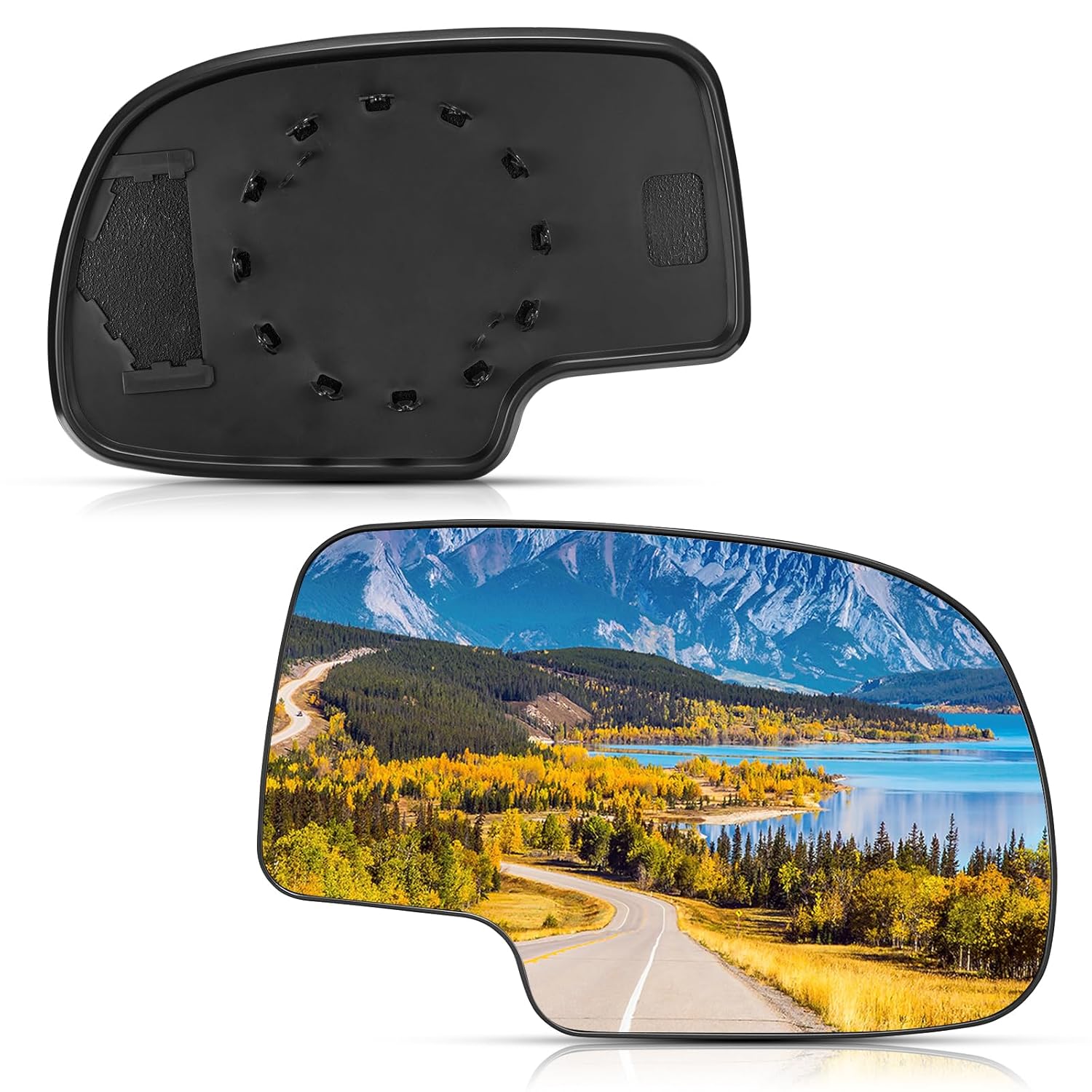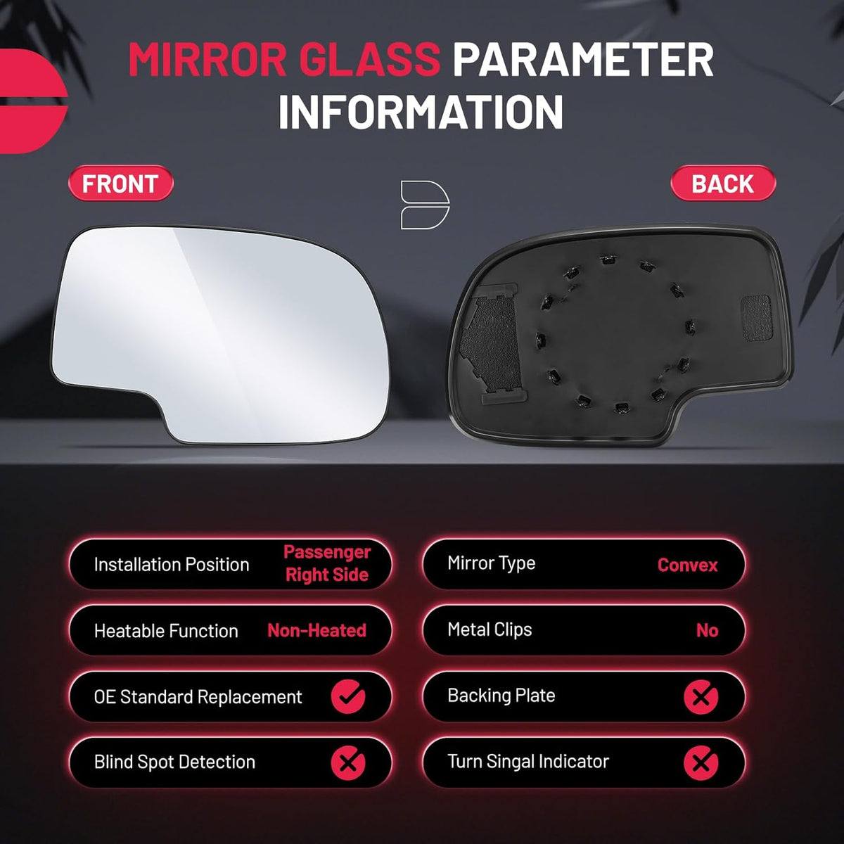 BDFHYK Mirror Glass Compatible with Silverado Suburban Tahoe Sierra Yukon 1500 Escalade, Side View Convex Mirror with Backing Plate (Right Side)