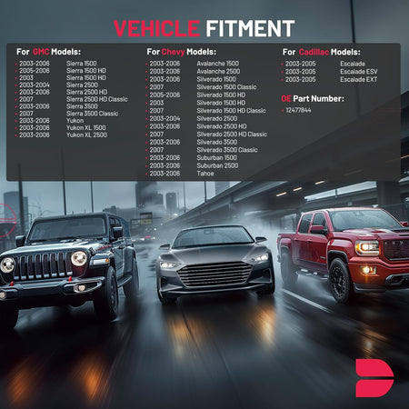 【COMPATIBILITY】Compatible with Chevy 1999-2006 Silverado; Compatible with GMC 1999-2006 Sierra 1500, 1999-2004 Sierra 2500, 2001-2006 Sierra 3500, 2000-2006 Yukon, 2000-2006 Tahoe Suburban 1500 2500; Compatible with Cadillac 2002-2006 Escalade. Position: Right (Passenger Side). Please confirm the compatibility according to the year/make/model of your vehicle and the OE number of the replaceable part.