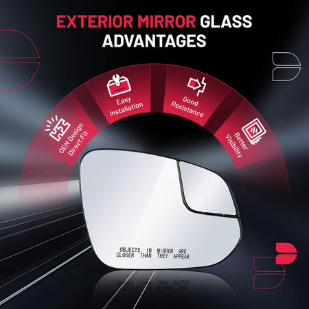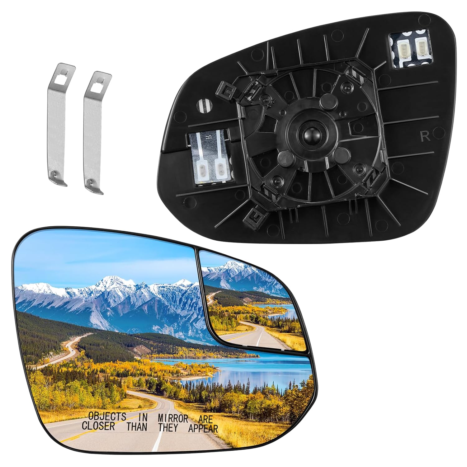 【PACKAGE INCLUDE】Includes 1 PCS Passenger Right side convex mirror glass. Come with two metal clips, plug and play, identical mounting point with factory mirror, perfectly fit with the existing electrical wiring. Wiring harness must be unplugged from existing backing plate and plugged into the new backing plate before installation. You can complete the installation in a few minutes.