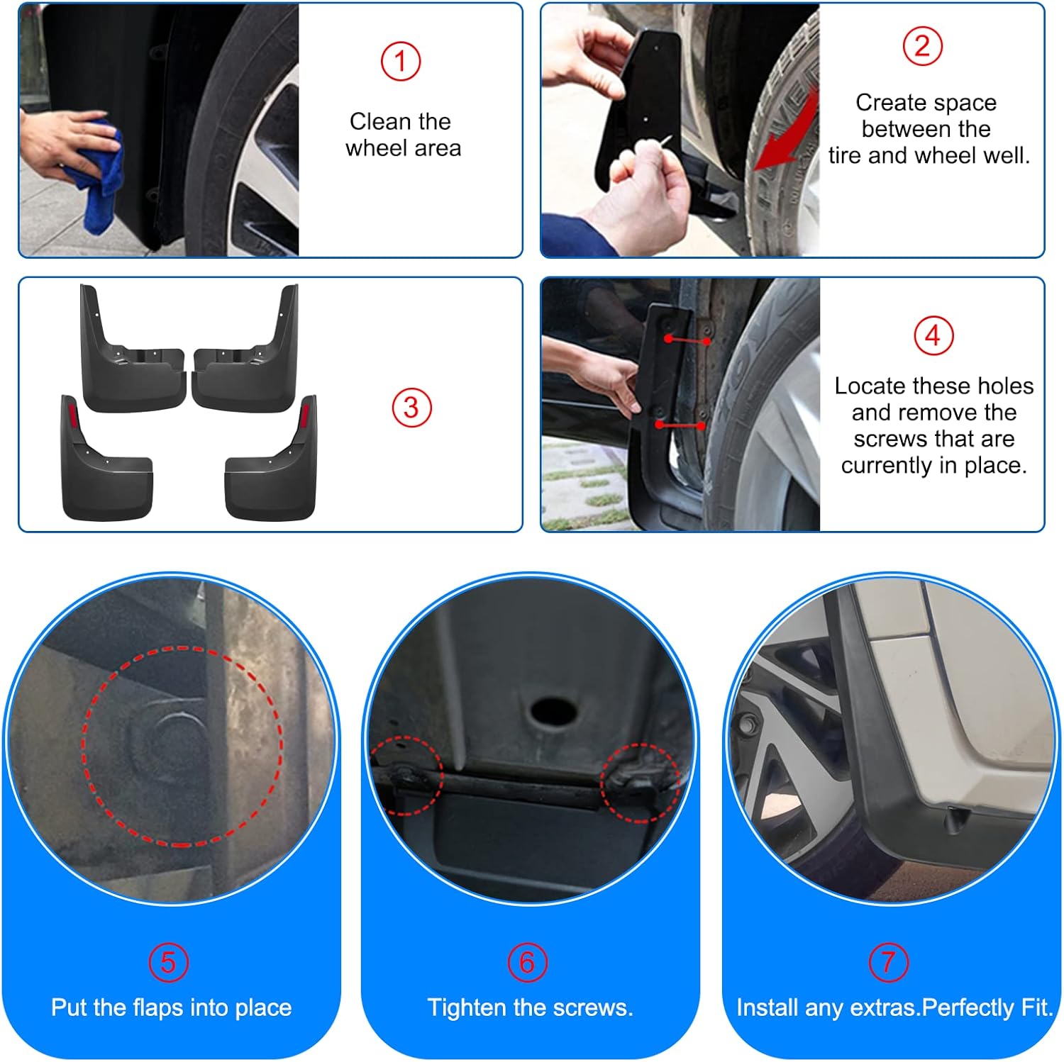 【What You Get】4 pieces of mud flaps with mount hardware.We offer 12 months guarantee, if you have any problem please tell us, thanks. Tips: Please check the product pictures, part numbers, and accessories information before when ordering, Thanks.