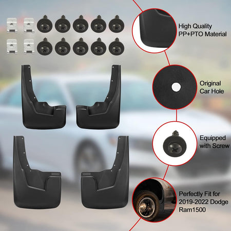 【Prefect Designed】Mud flaps compatible with Dodge Ram 1500 2019-2022. Not Fit TRX models/Classic/Without fender flares.