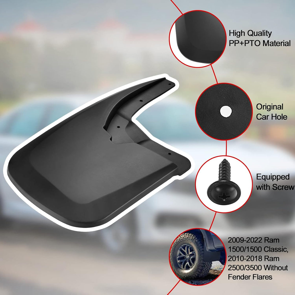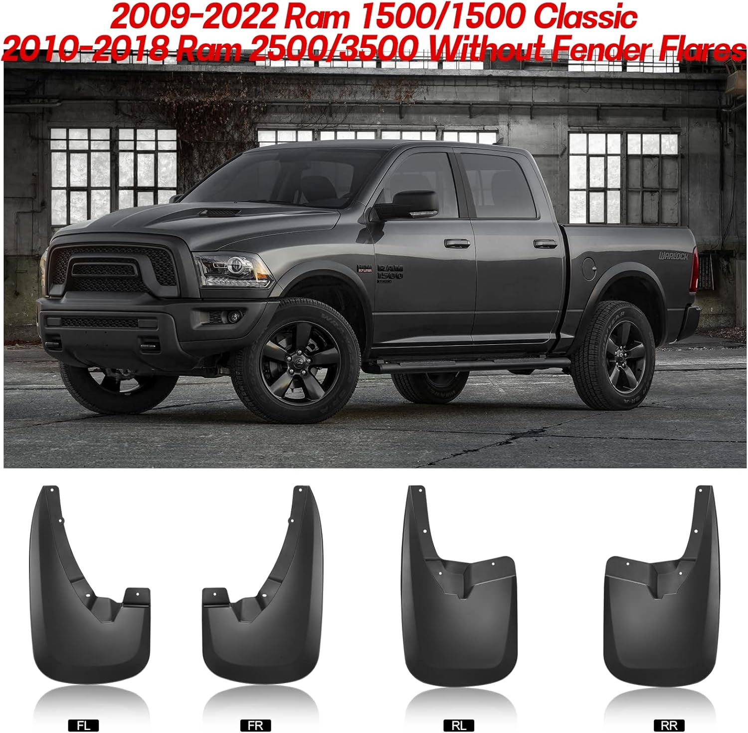 BDFHYK Mud Flaps Splash Guards 4PCS Front & Rear Side Mud Guards Compatible with Dodge Ram 1500 2500 3500 (2009-2022) Without OEM Fender Flares