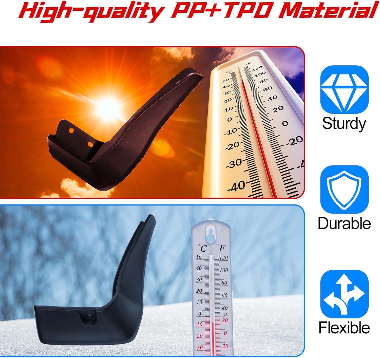 【What You Get】4 pieces of mud flaps with mount hardware.We offer 12 months guarantee, if you have any problem please tell us, thanks. Tips: Please check the product pictures, part numbers, and accessories information before when ordering, Thanks.