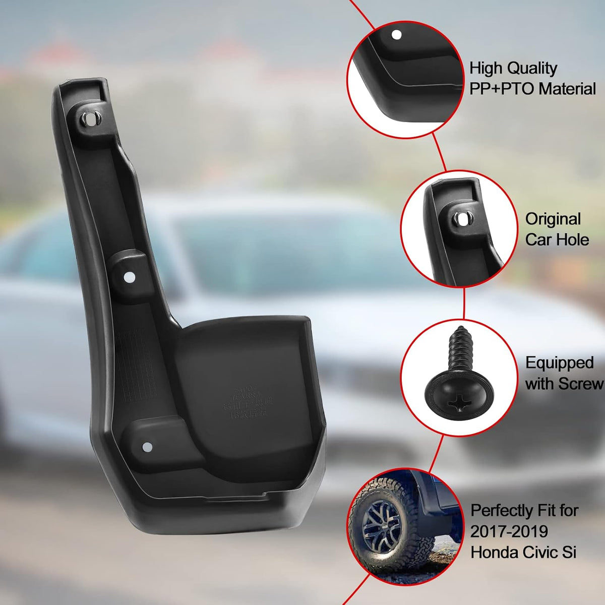 【Prefect Designed】Mud flaps compatible with Honda Civic Si 2017-2019 Without Fender Flares.(It only fits "Si" models, not DX, EX, LX, Touring, Turbo, i-Style, Sport models)