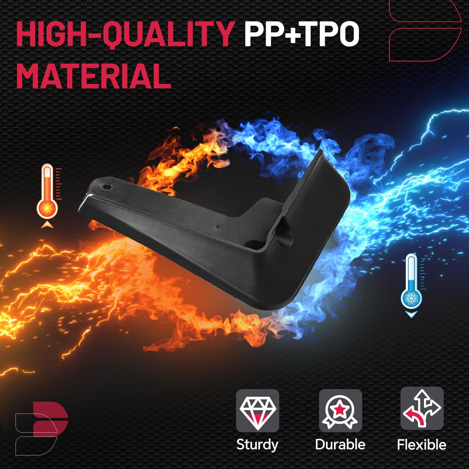【Srong Material】Mud guards made of top-quality PP(Polypropylene)+TPO(Thermoplastic polyolefin)materials, after rigorous tests ensure that the mud flaps for camry can work, such as low temperatures, rainy day, snow day or dry. Protecting your car, easy to clean and reduces dirt.