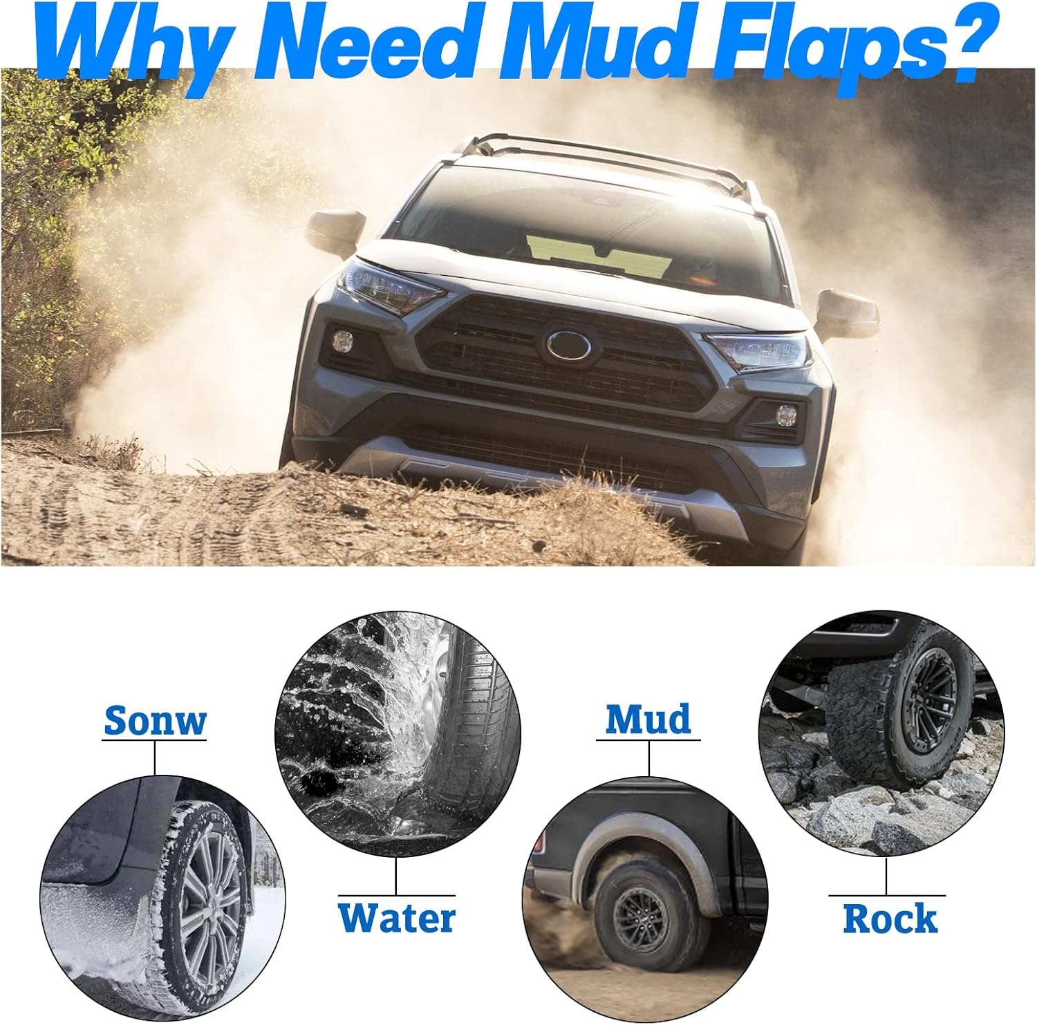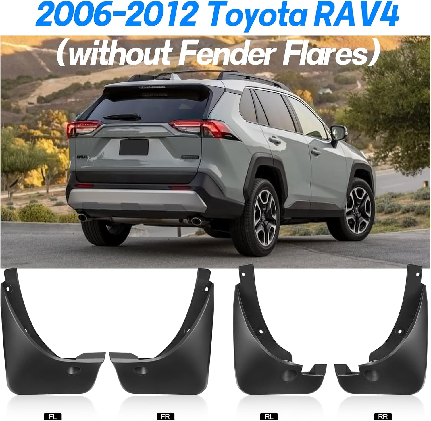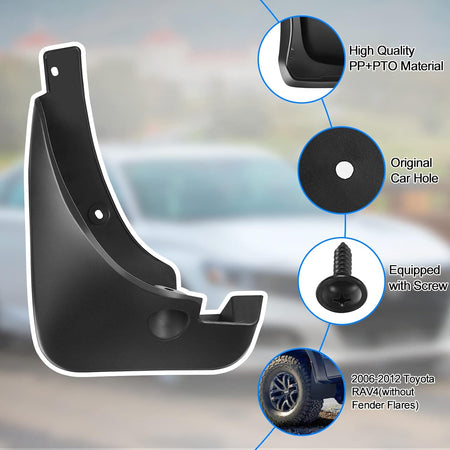 【Prefect Designed】Mud flaps compatible with Toyota RAV4 2006-2012 base / limited / sport; compatible with Toyota RAV4 2012 ev sport utility 4-door. Please Note : only available for Fit Vehicles Without Fender Flares!