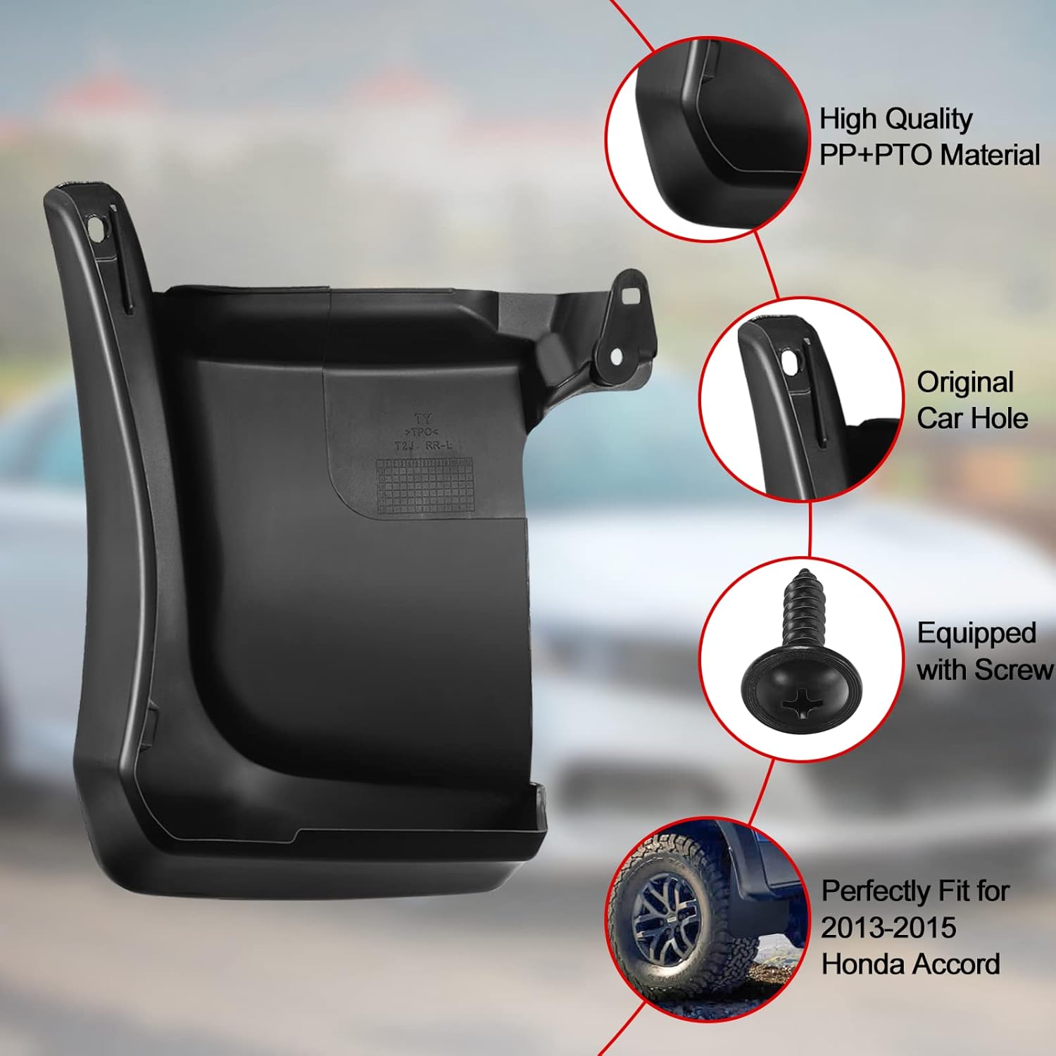 Prefect Designed: Mud flaps conforms to the car body design and protects the car body clean compatible with Honda Accord 2013-2015 EX / EX-L / LX; sedan 4-door. Please Note: Fit for four-door sedan models and It fits the model without fender flares! No Fit models for sport, plug-In touring and hybrid