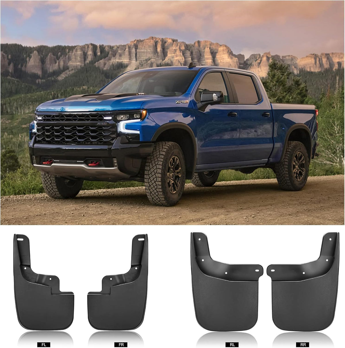【Strong Material】Mud guards made of top-quality PP(Polypropylene)+TPO(Thermoplastic polyolefin)materials, after rigorous tests ensure that the mud flaps for Chevy Silverado can work, such as low temperatures, rainy days, and snow day or dry. Protecting your car is easy to clean and reduces dirt.