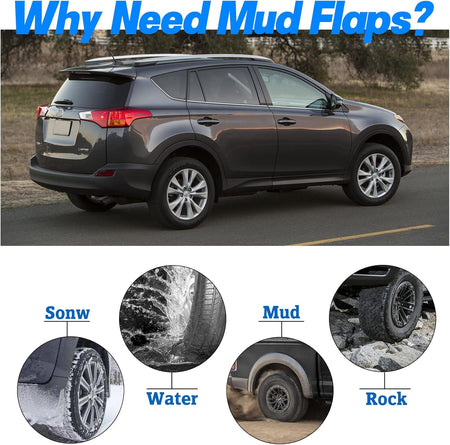 All-Weather Protection: Compatible with Toyota RAV4 splash guards, No matter the weather protect your car from mud, rocks, sand, dirt, and other road debris, reducing the number of car washing and paint. Even if a fender is installed, the vehicle body is not damaged to prevent the obstacle from flying toward the vehicle body, perfect for keeping it clean