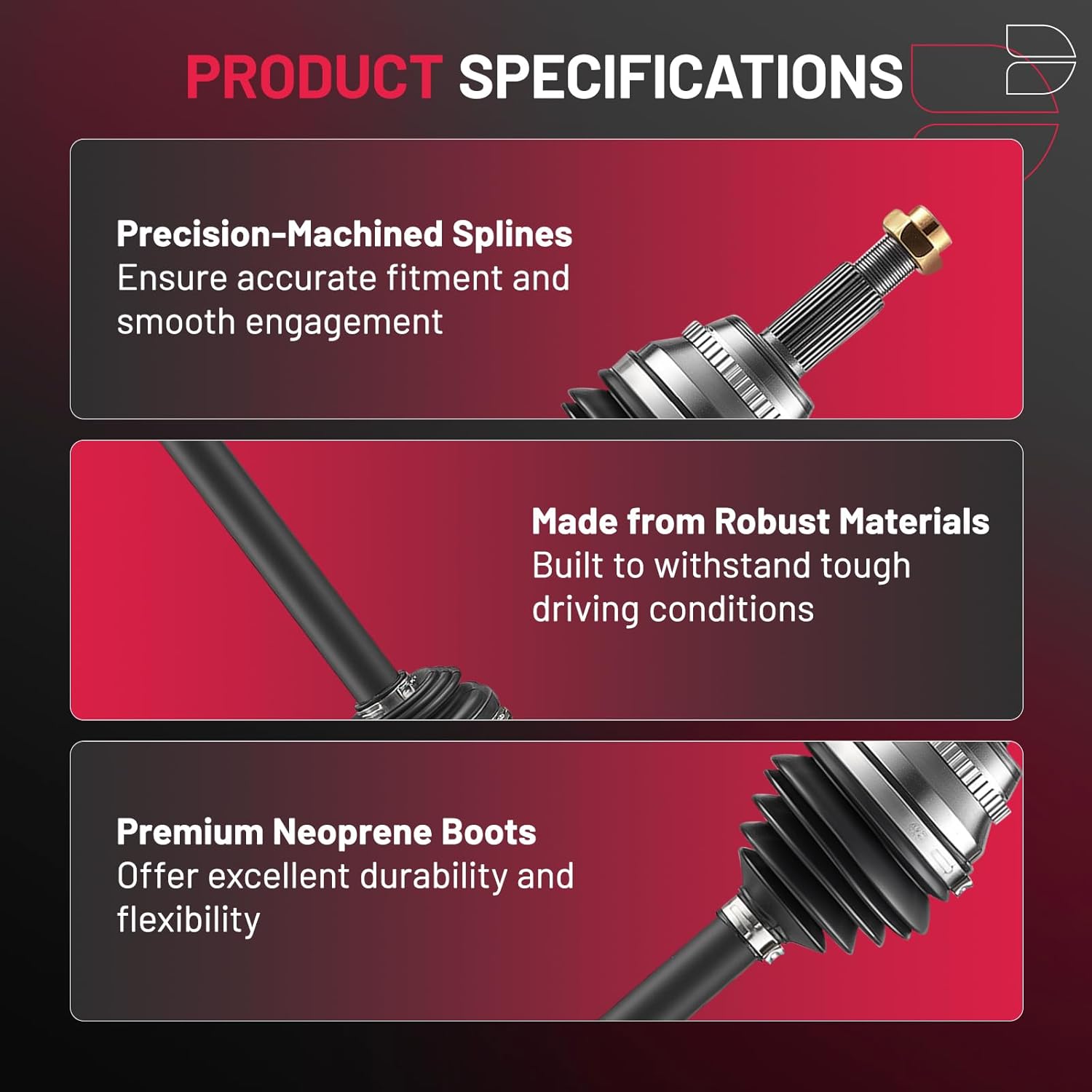 【12-Month Customer Service】 Enjoy complete peace of mind with our CV Axle Shaft Assembly—if it ever fails, cracks, or stops working, simply contact us via Amazon to receive a replacement, ensuring your vehicle continues running smoothly and reliably.