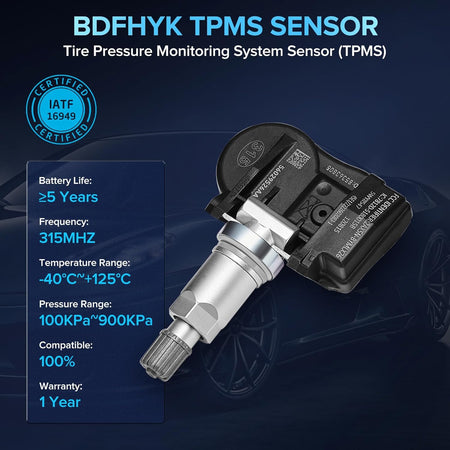 [CUSTOMER SERVICE] : 1-year Assurance. All BDFHYK Tire Pressure Monitoring System (TPMS) sensors undergo rigorous testing during manufacturing to ensure top quality. If you have any questions, please do not hesitate to contact us. Your satisfaction is our top priority
