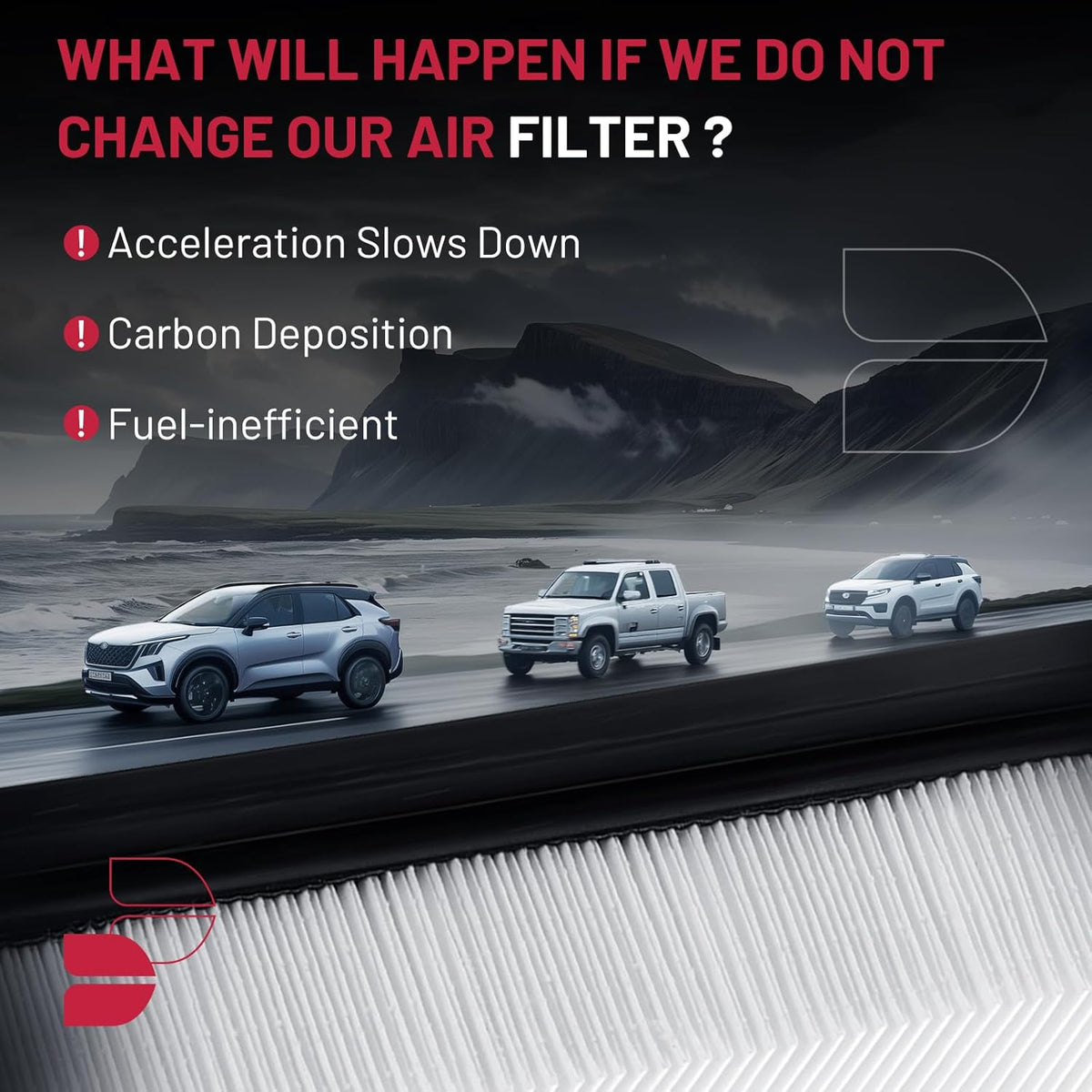 【SUGGESTION】To ensure that the vehicle air filter provides your engine with clean air, recommended replacement every 12 months, 12,000 miles or as specified by the vehicle manufacturer.
