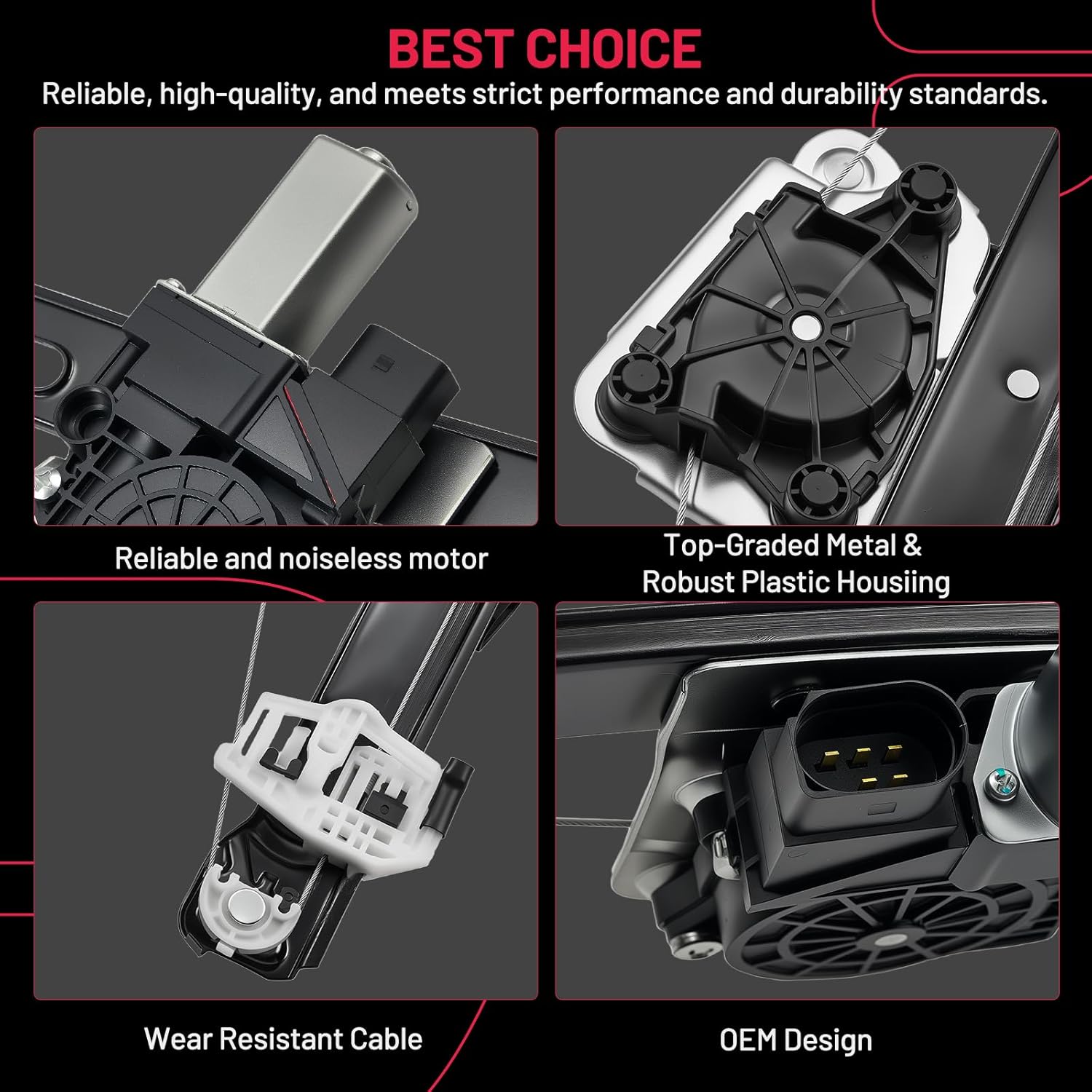 【Premium Quality】 This window regulator and motor assembly feature significant enhancements over the factory part, providing a higher level of reliability. It incorporates tension springs to effectively resist cable reel binding caused by prolonged use. Additionally, it is equipped with advanced cable guides to eliminate high cable tension and reduce cable stress.