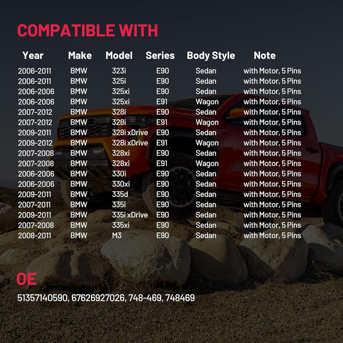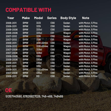 【Compatible Vehicles】 Compatible with Compatible with 2006-2011 BMW 323i, Compatible with 2006-2011 BMW 325i, Compatible with 2006 BMW 325xi, Compatible with 2007-2012 BMW 328i, Compatible with 2009-2012 BMW 328i xDrive, Compatible with 2007-2008 BMW 328xi, Compatible with 2006 BMW 330i, Compatible with 2006 BMW 330xi, Compatible with 2009-2011 BMW 335d, Compatible with 2007-2011 BMW 335i, Compatible with 2009-2011 BMW 335i xDrive, Compatible with 2007-2008 BMW 335xi, Compatible with 2008-2011 BMW M3