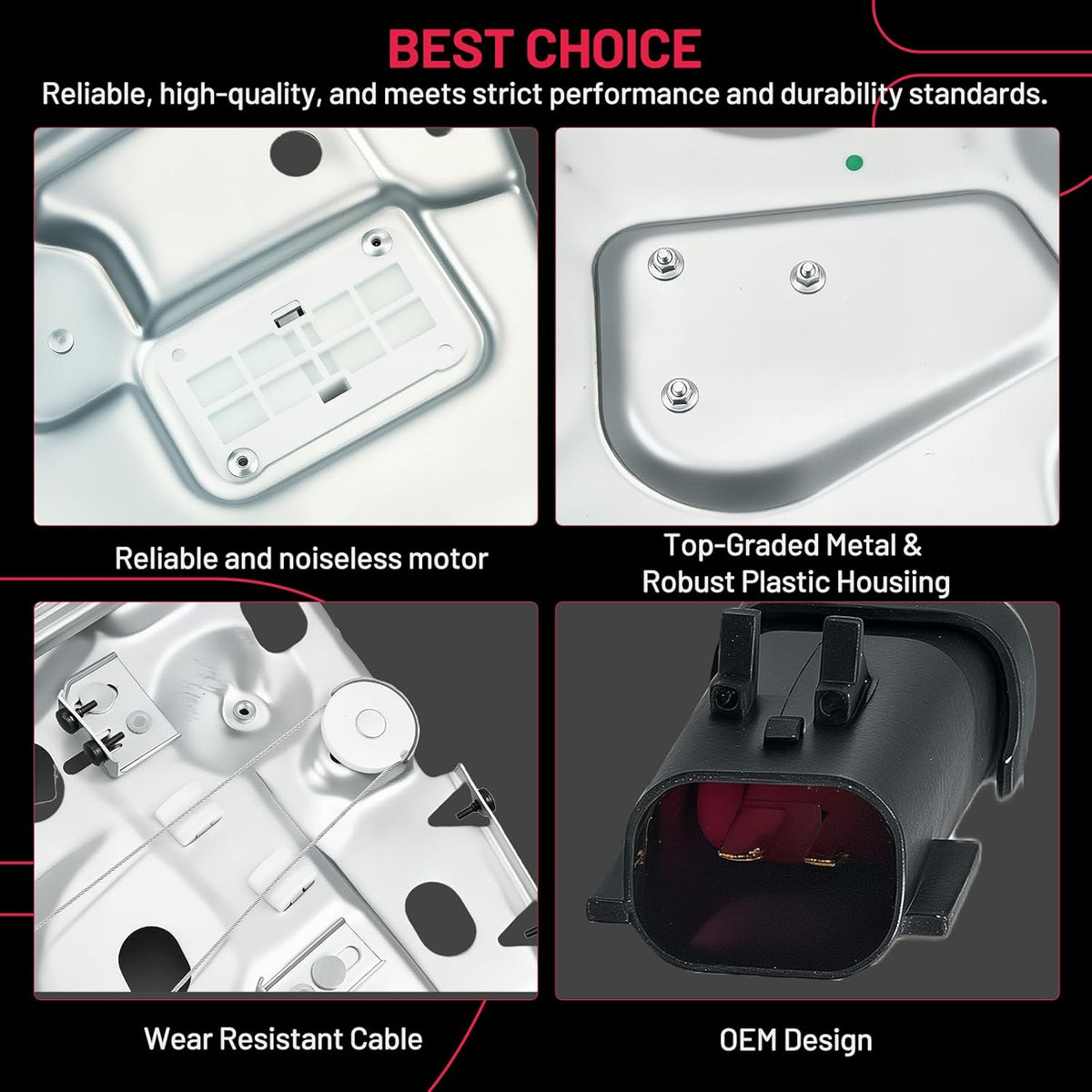 【Premium Quality】 This window regulator and motor assembly feature significant enhancements over the factory part, providing a higher level of reliability. It incorporates tension springs to effectively resist cable reel binding caused by prolonged use. Additionally, it is equipped with advanced cable guides to eliminate high cable tension and reduce cable stress.