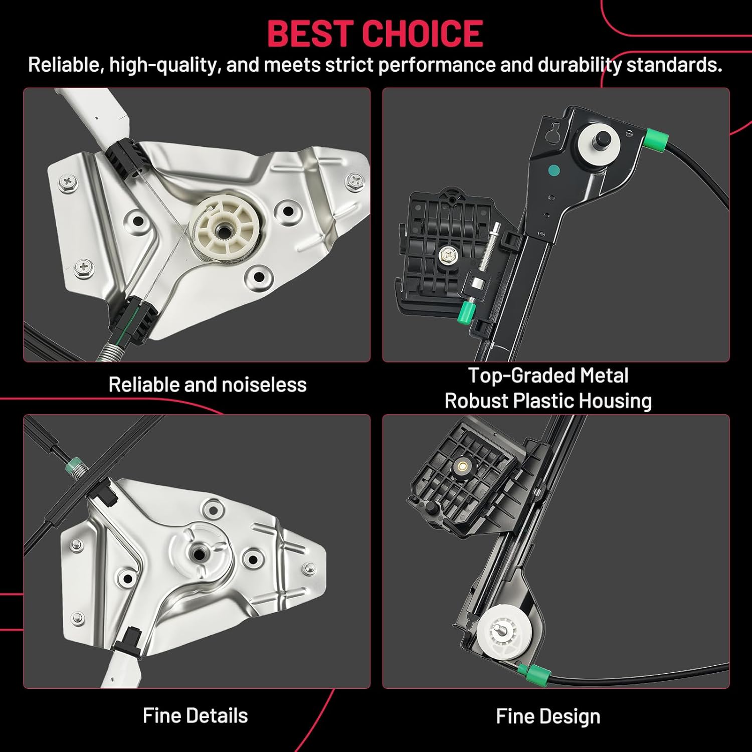 【Premium Quality】 This window regulator and motor assembly feature significant enhancements over the factory part, providing a higher level of reliability. It incorporates tension springs to effectively resist cable reel binding caused by prolonged use. Additionally, it is equipped with advanced cable guides to eliminate high cable tension and reduce cable stress.