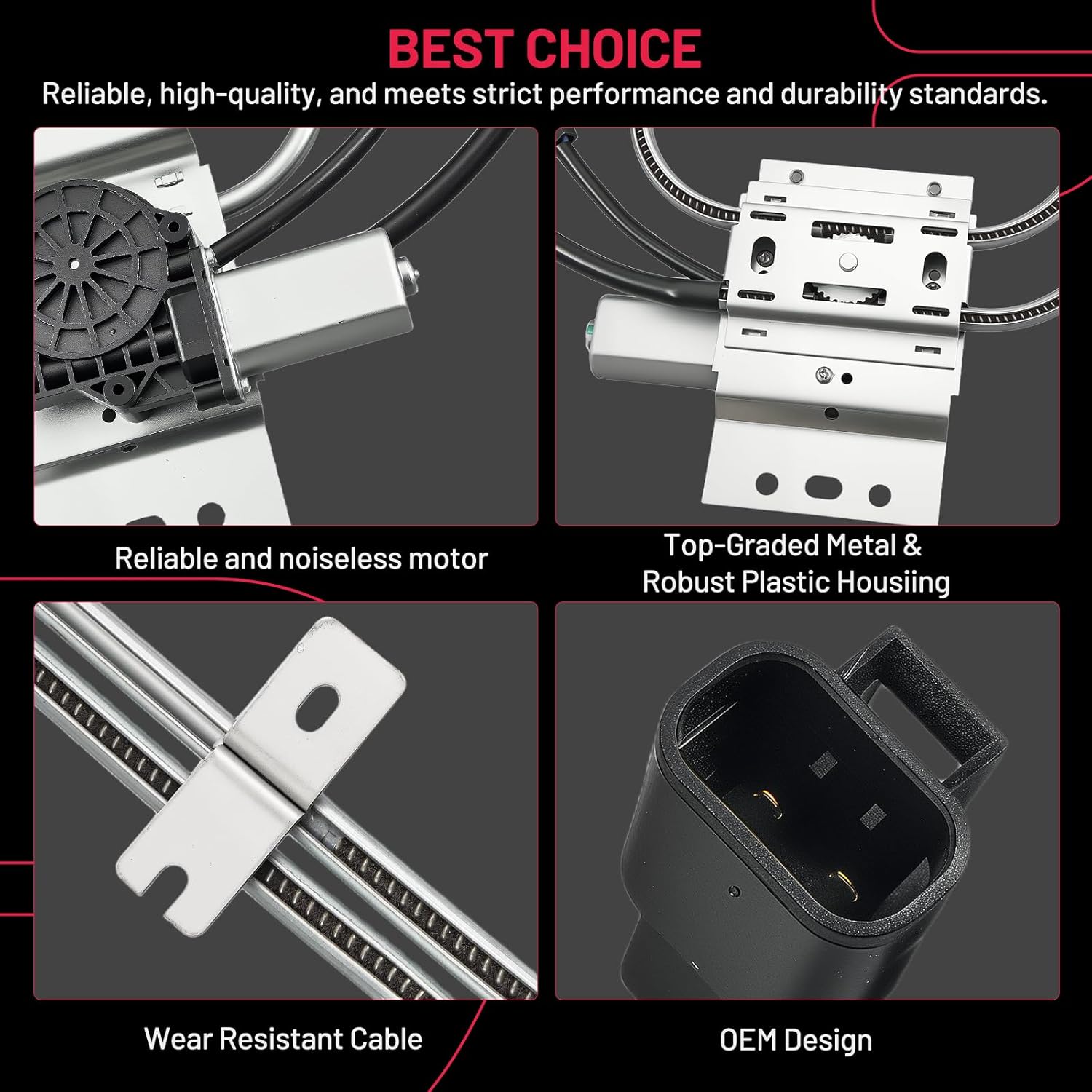 【Premium Quality】 This window regulator and motor assembly feature significant enhancements over the factory part, providing a higher level of reliability. It incorporates tension springs to effectively resist cable reel binding caused by prolonged use. Additionally, it is equipped with advanced cable guides to eliminate high cable tension and reduce cable stress.