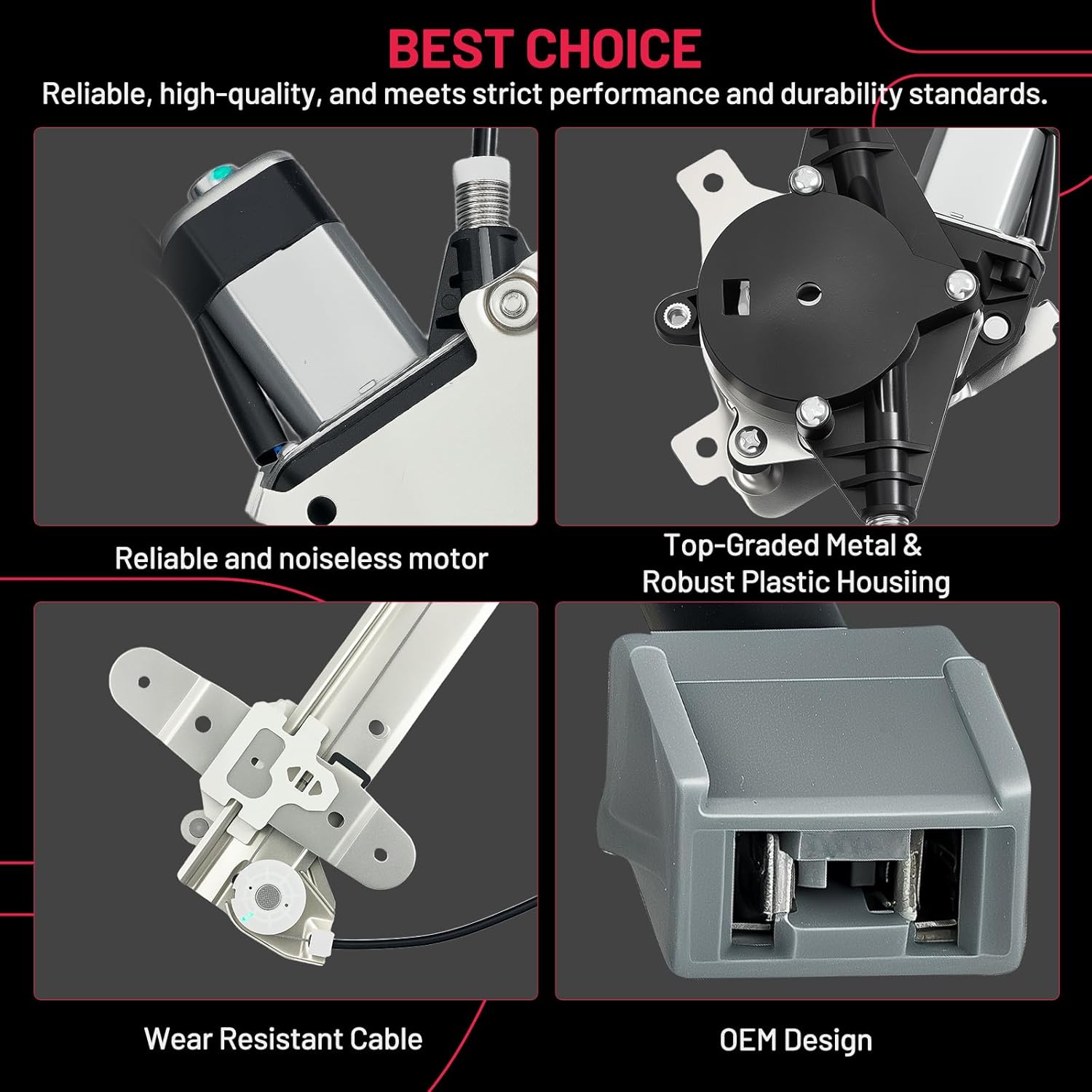 【Premium Quality】 This window regulator and motor assembly feature significant enhancements over the factory part, providing a higher level of reliability. It incorporates tension springs to effectively resist cable reel binding caused by prolonged use. Additionally, it is equipped with advanced cable guides to eliminate high cable tension and reduce cable stress.