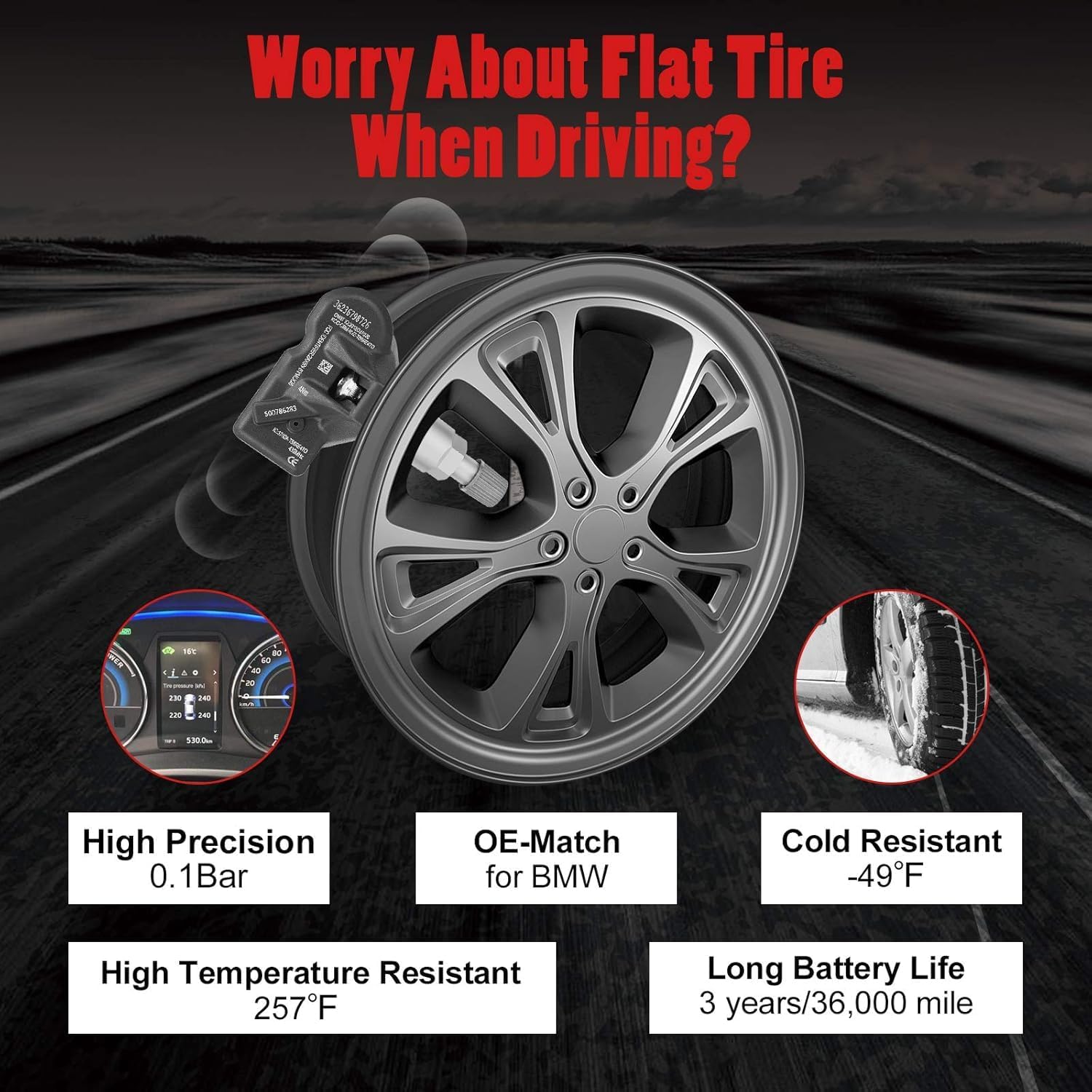 【PERFECT FUNCTION】With high level of tire monitor accuracy and sensitivity, the tire pressure monitoring sensor perfectly matched with the front and rear wheels, left and right sides means you will get a fairly reliable sensor to monitor tire pressure