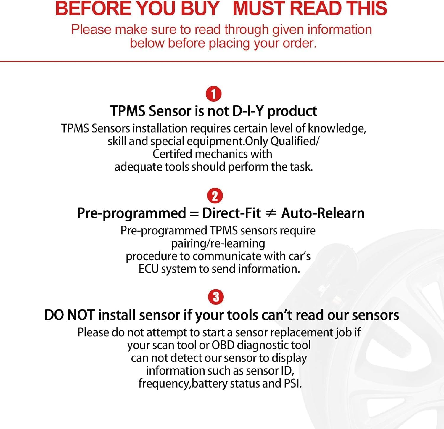 【EASY TO USE】Our preprogrammed tire sensor comes ready to be paired to compatible vehicle, just need to pair and relearn after installation. please refer to standard relearn procedure specified on the user guide included
