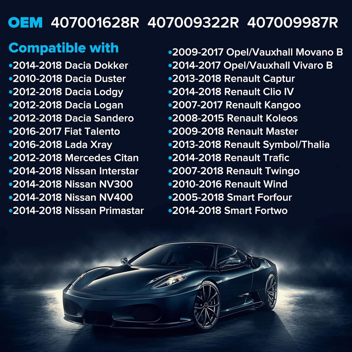 []-The TPMS is 100% Brand new Compatible with Nissan: 2014 - 2018 Interstar, 2014 - 2018 NV300, 2014 - 2018 NV400, 2014 - 2018 Primastar; 2012 - 2018 Mercedes Citan, Renault: 2013 - 2018 Captur, 2014 - 2018 Clio IV, 2007 - 2017 Kangoo, 2008 - 2015 Koleos, 2009 - 2018 Master, 2013 - 2018 Symbol/Thalia, 2014 - 2018 Trafic, 2007 - 2018 Twingo, 2010 - 2016 Wind, Dacia: 2014 - 2018 Dokker, 2010 - 2018 Duster, 2012 - 2018 Lodgy etc and check more in the description
