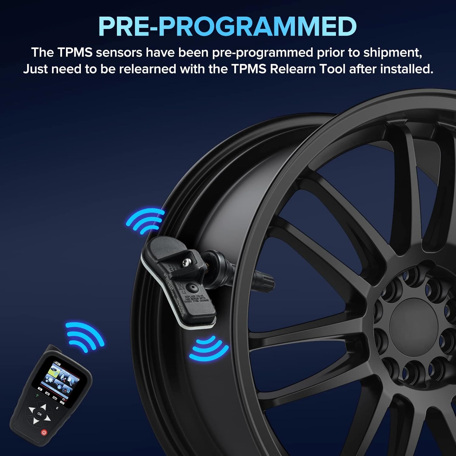 [? ]-Our preprogrammed tire sensor comes ready to be paired to compatible vehicle, just need to pair and relearn after installation. please refer to standard relearn procedure specified on the user guide included.