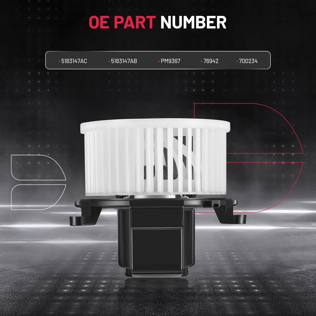 【Compatible Part Numbers】:Replacement for Blower Motor OE Number:5183147AC 5183147AB PM9367 76942 700234.