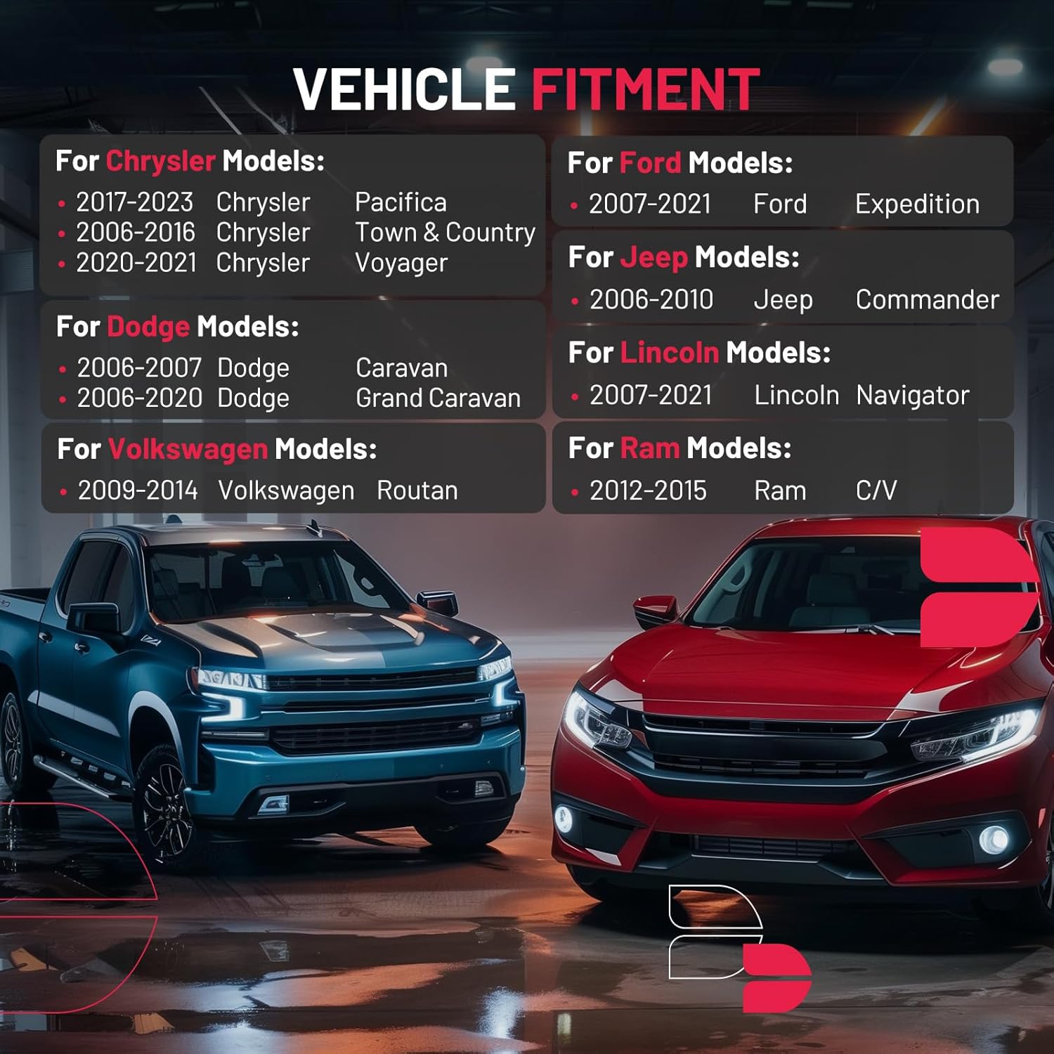 【Fitment information】:Install Location: Rear. Compatible with Chrysler 2017-2023 Pacifica,2006-2016 Town & Country,2020-2021 Voyager; Compatible with Dodge 2006-2007 Caravan,2006-2020 Grand Caravan; For 2007-2021 Expedition; Compatible with Jeep 2006-2010 Commander; Compatible with Lincoln 2007-2021 Navigator; Compatible with Ram 2012-2015 C/V; Compatible with Volkswagen 2009-2014 Routan.Please confirm the compatibility according to the year/make/model of your vehicle and the OE number of the replaceable part.