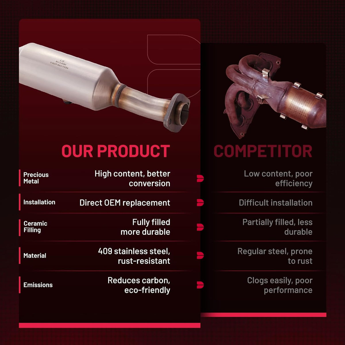 【High Quality】The catalyst converter body Made of high quality stainless steel, with better high temperature resistance, oxidation and corrosion resistance, sturdy for long service time. contains Platinum, Rhodium, Palladium rare metals to catalyze harmful tail gases to zero efficientl, to enhance purification efficiency and intensity, Compliant EPA standards. Direct-fit compatible with original equipment, ensuring seamless installation.