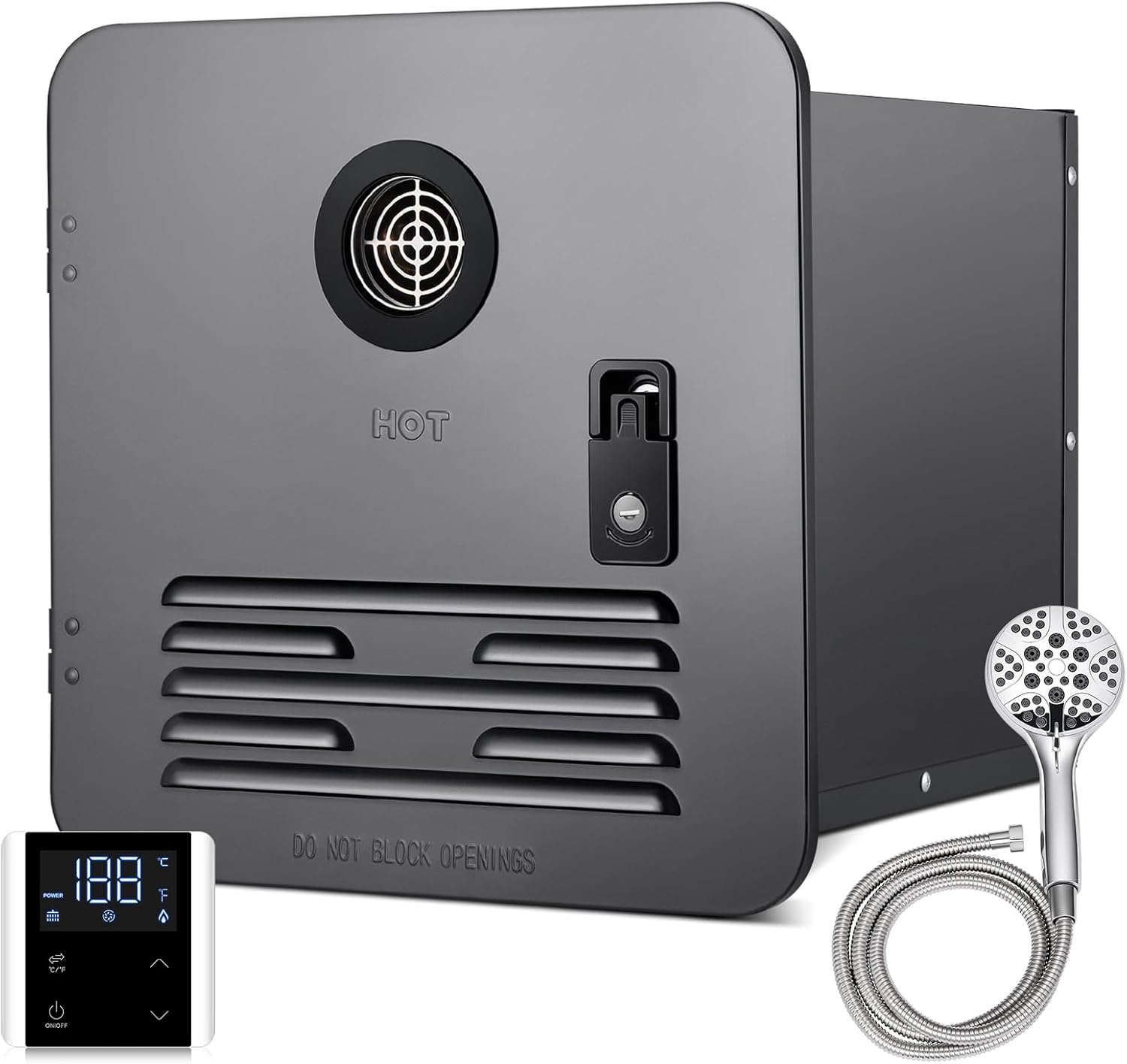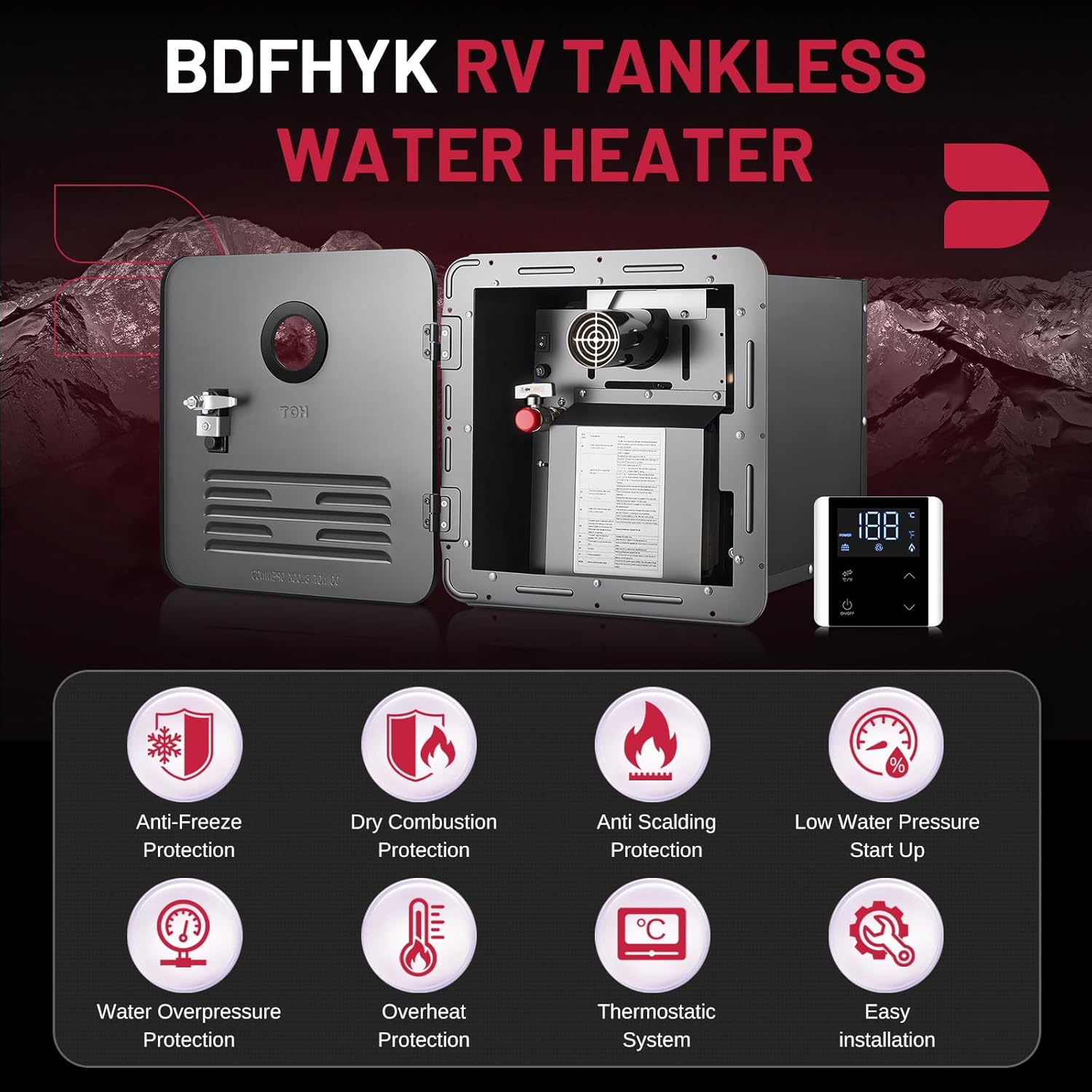 Instant Heating: Propane water heaters are better than storage water heaters! No need to wait 20-30 minutes, the propane heats up instantly with 65,000 BTU power. As long as there is enough water, the built-in microcomputer panel lets you adjust water temperature between 95°F and 124°F it can provide you with hot water at any time. No need to worry about power outages in the RV - the perfect companion for long trips